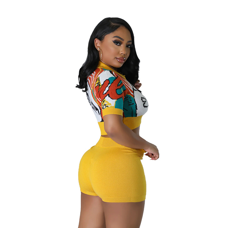 Copy| Product Name | Women Sexy Printed Casual Top and Shorts Two-Piece Set |