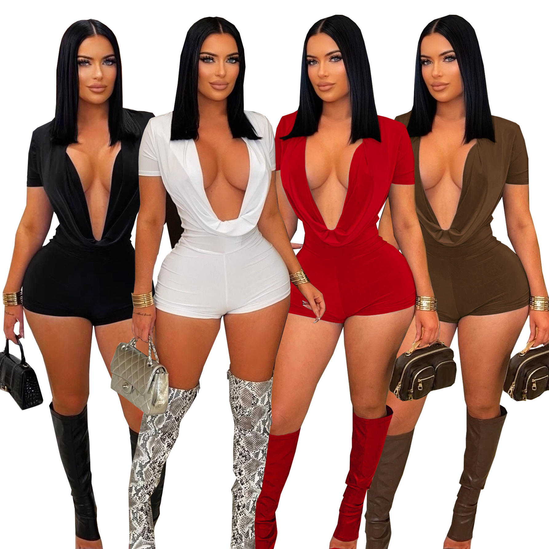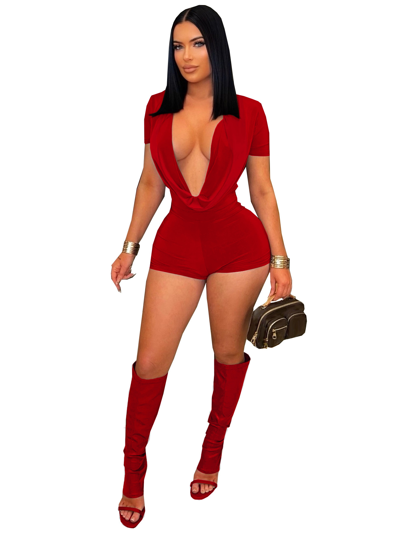 Copy| Product Name | Women Spring/Summer Sexy V-Neck Solid Jumpsuit |