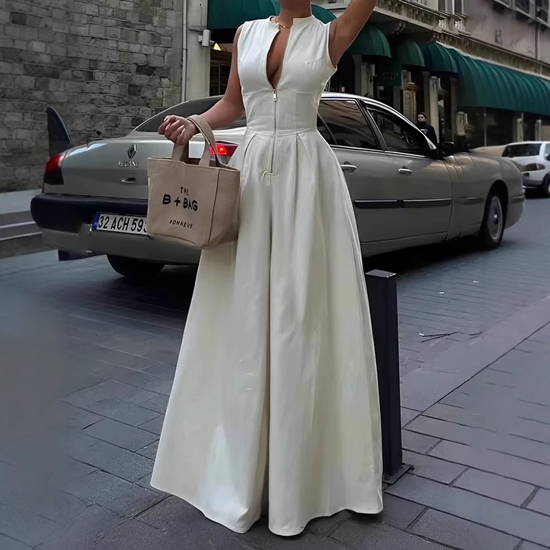 Copy| Product Name | Women Summer Elegant Casual White Sleeveless Zipper Jumpsuit |