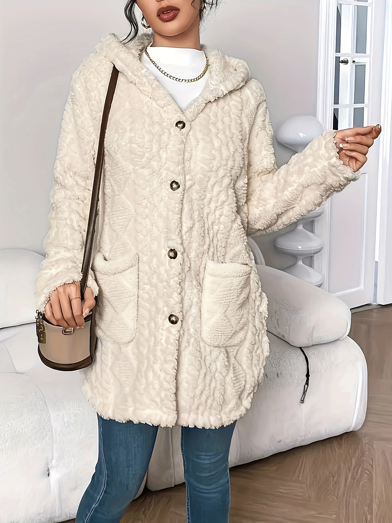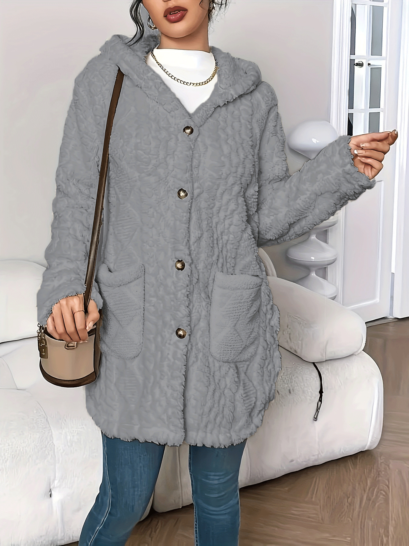 This Women Winter Casual Jacquard Plush Hooded Long-Sleeve Jacket Made Of Durable And Thick Material. It Is a Must-Have Item For Autumn And Winter. Global Lover Offer Wholesale Jackets And Coats In Wide Range Selection, Everything Is Fashion Related And Ladies Find Here a Warm And Exciting Place To Shop Jackets And Coats For Women - The Chic Blazer, Timeless Leather Jackets, Cool Bomber Coats, Winter Thick Down Coats...When You Need More Wholesale Women Outerwear, You Can Always Find What You Need On Our Wholesale Women Clothing Online Store.