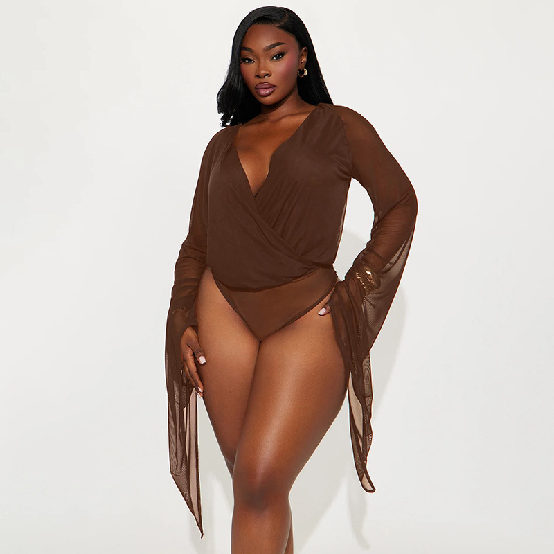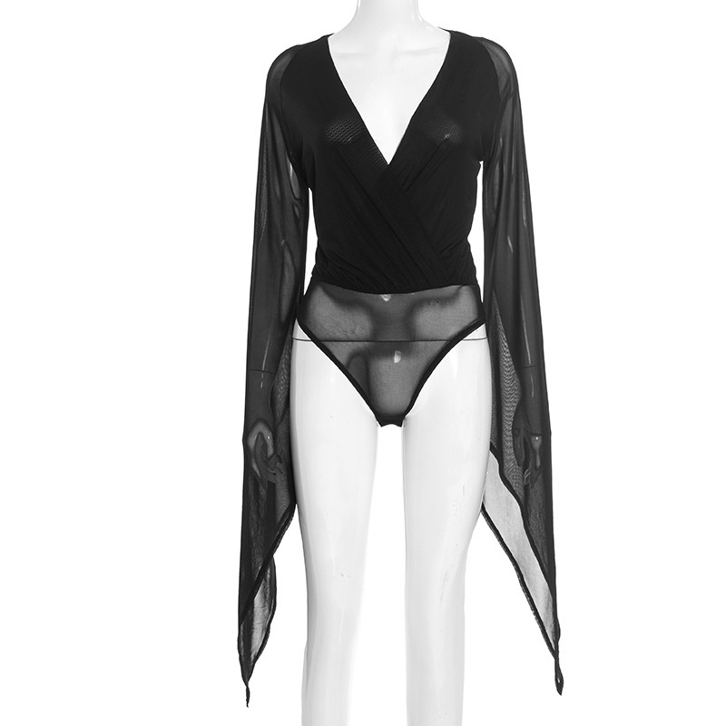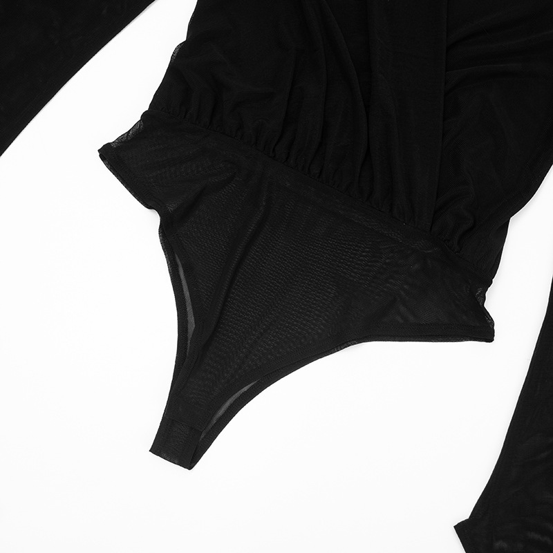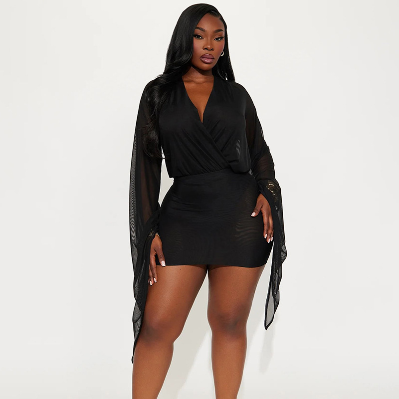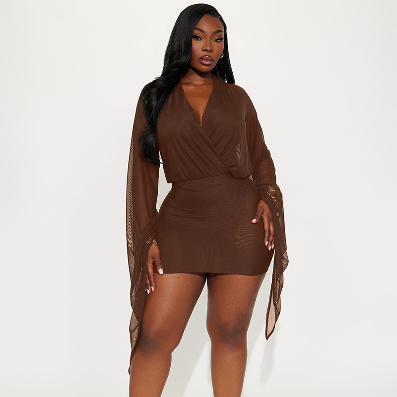 Copy| Product Name | Women Winter Elegant Long-Sleeved V-Neck Mesh Mini Bodycon Dress |