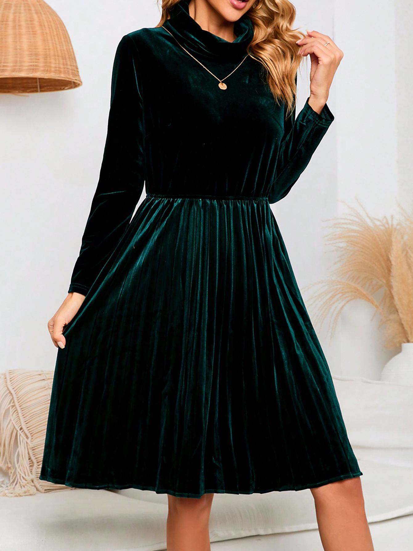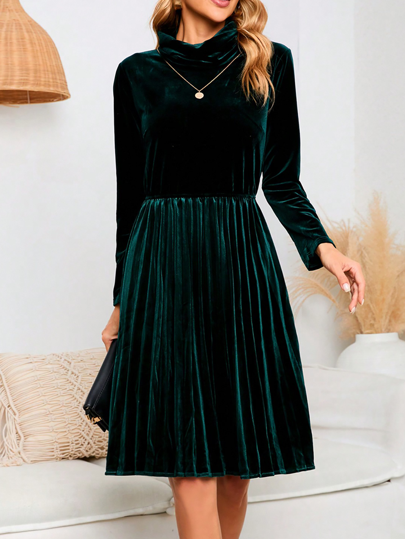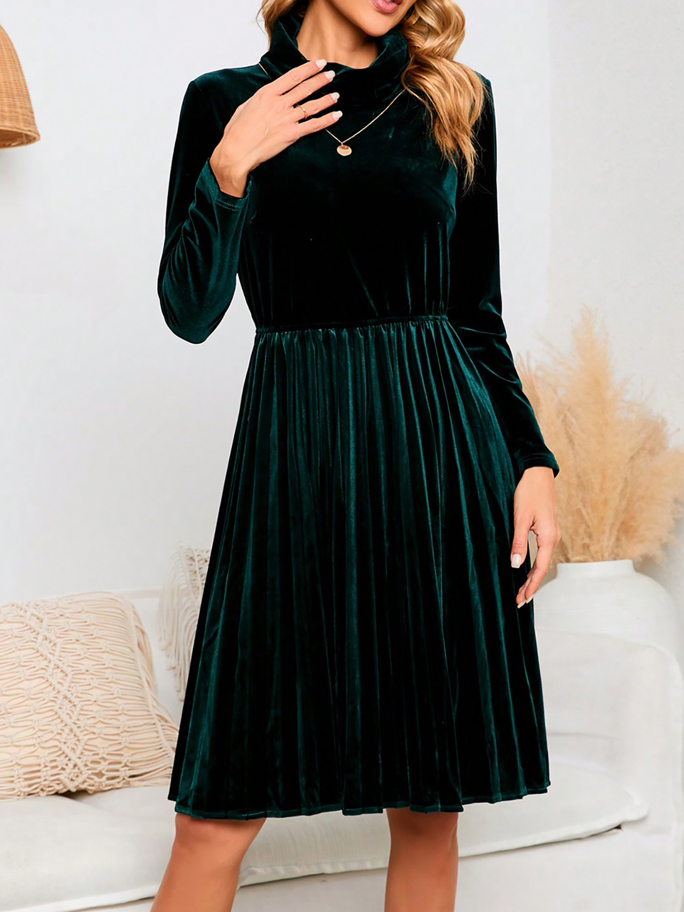 Copy| Product Name | Women's Autumn Elegant Chic Solid Color Long Sleeve Velvet Dress |