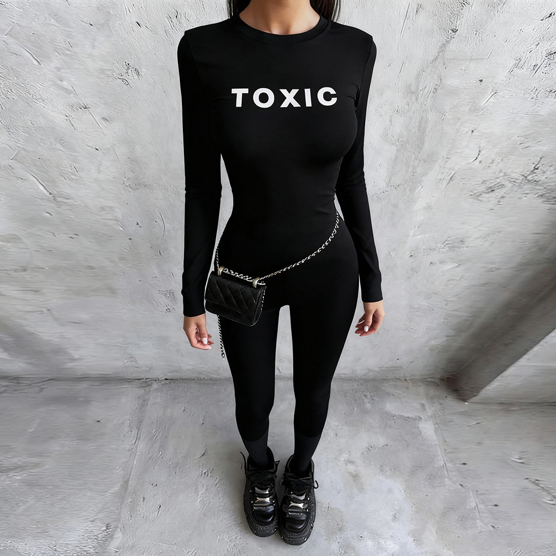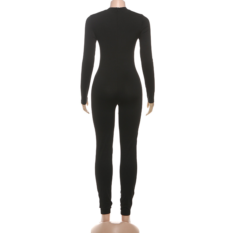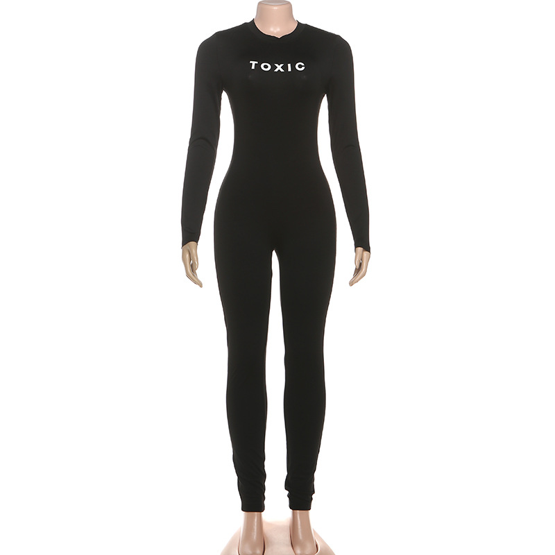 Copy| Product Name | Women's Autumn Fashion Street Solid Color Print Round Neck Tight Fitting Jumpsuit |