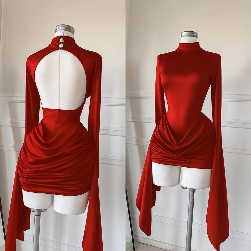 Copy| Product Name | Women's Autumn Mock Neck Long Sleeve Low Back Ruched Mini Dress |