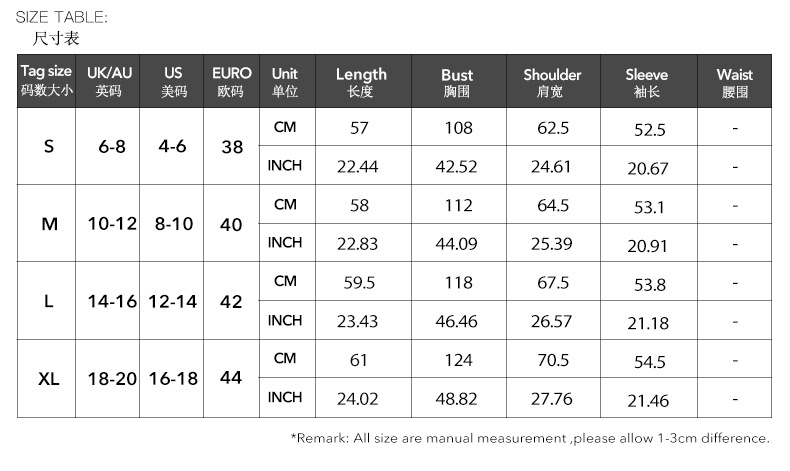 High Elasticity Fabric:Please add 0-0.5 CM from the garment size to body size.