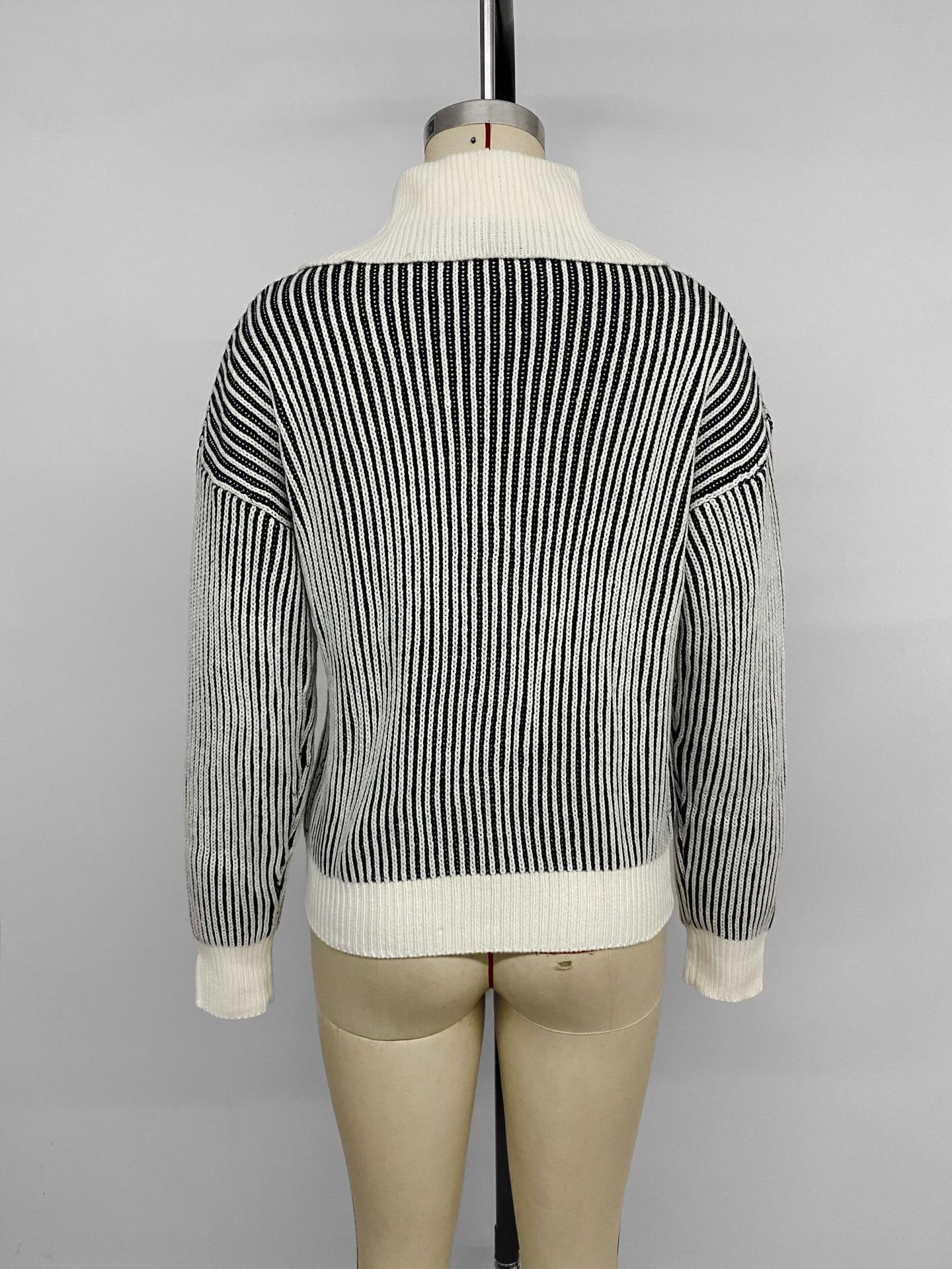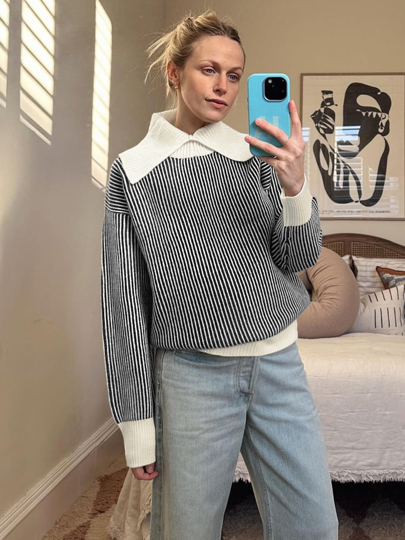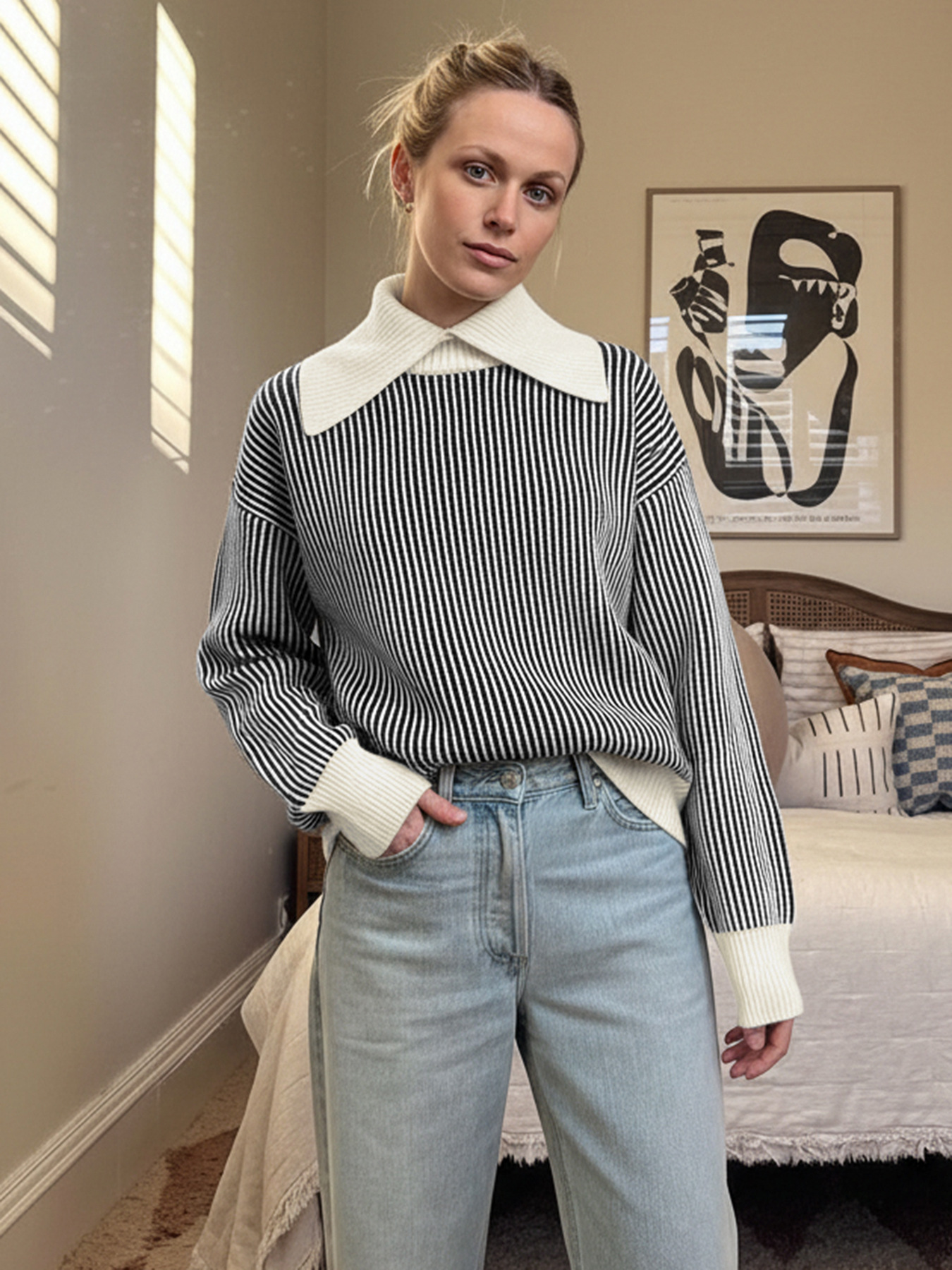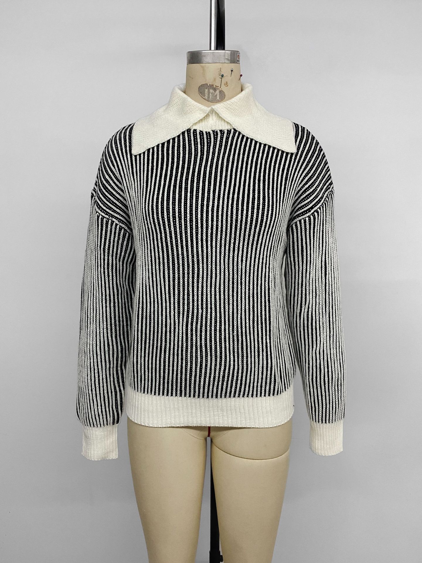 Copy| Product Name | Women's Autumn Winter Casual Turndown Collar Patchwork Striped Sweater |