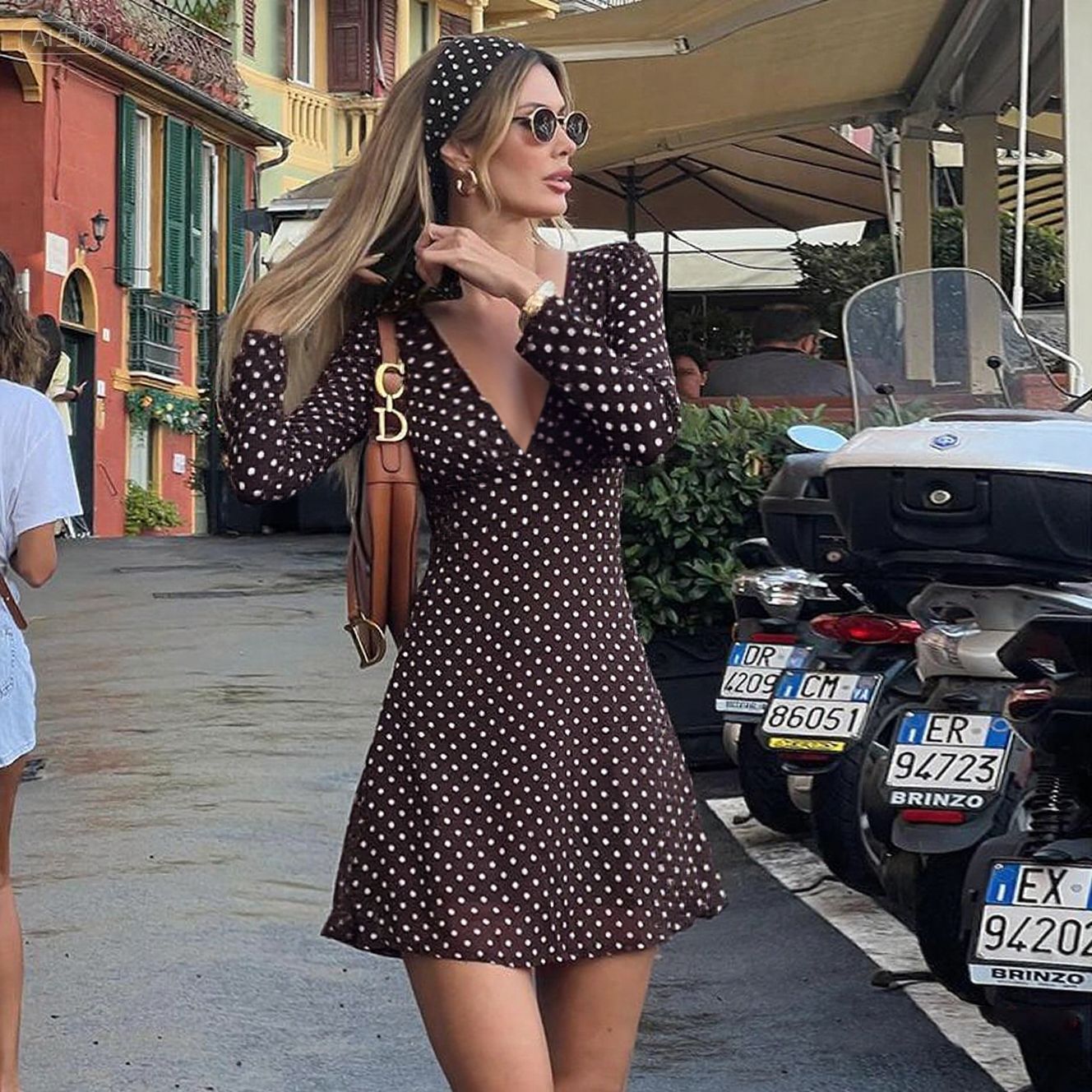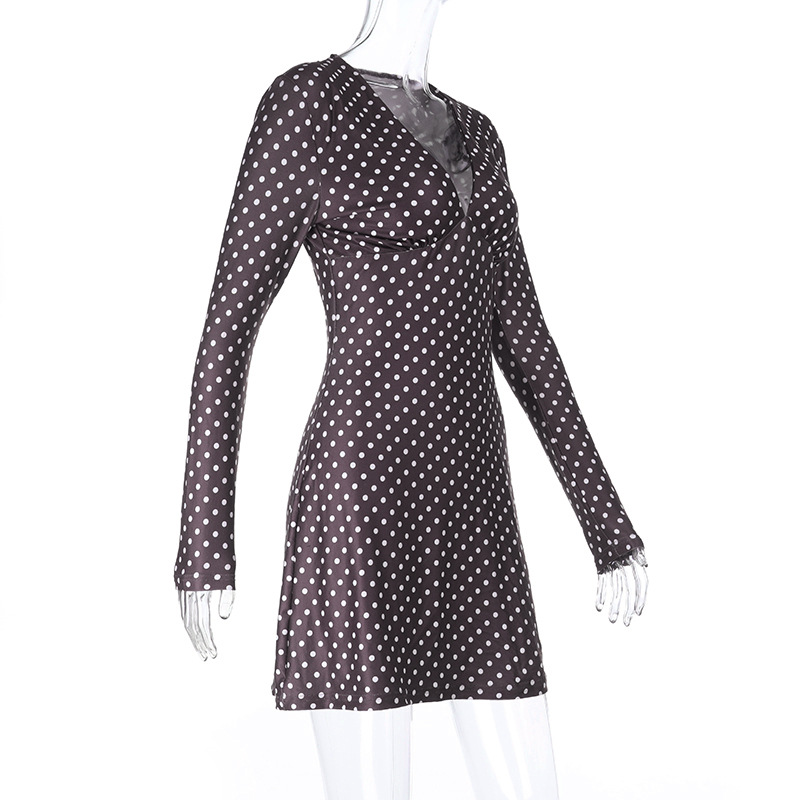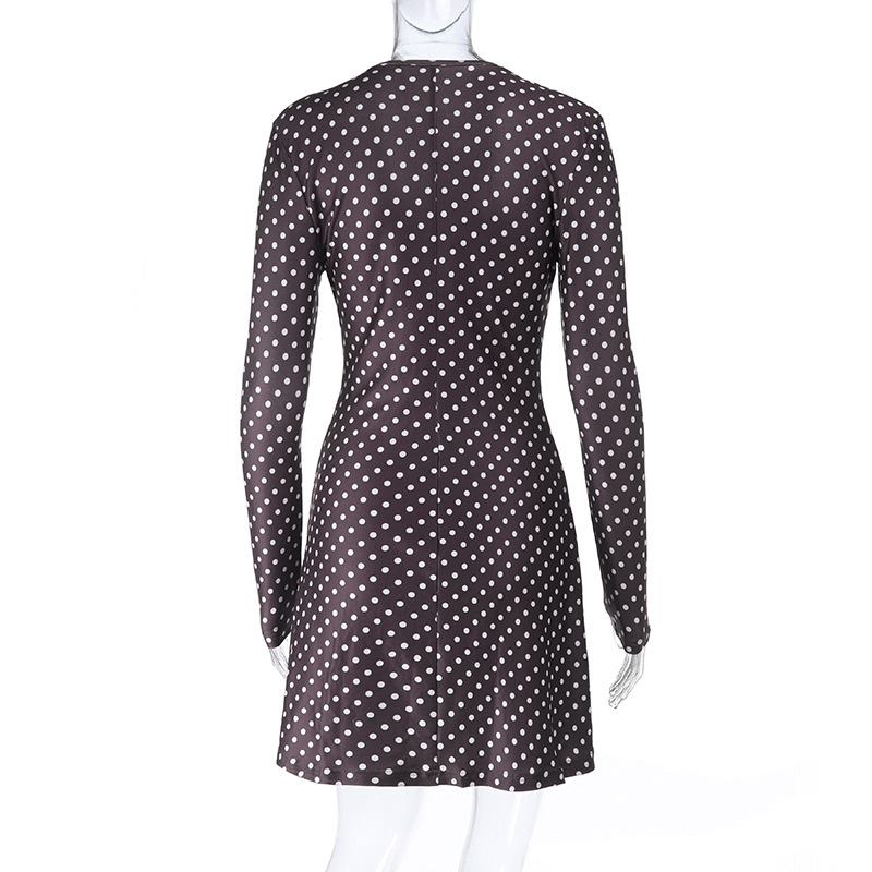 Copy| Product Name | Women's Autumn Winter Chic V-Neck Polka Dot Long Sleeve Slim Waist Short Dress |