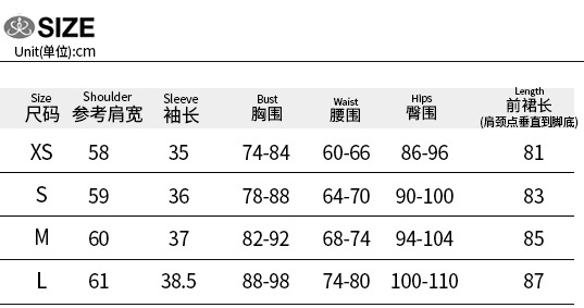 High Elasticity Fabric:Please add 0-0.5 CM from the garment size to body size.