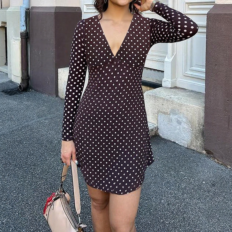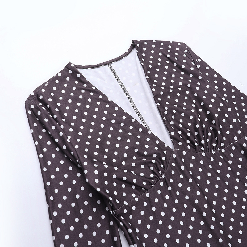 This Women's Autumn Winter Chic v-Neck Polka Dot Long Sleeve Slim Waist Short Dress Design Made Of High Quality Polyster And Spandex Material. It Is Stretchy, Durable And Comfortable. Casual Dresses With Long Sleeves Can Not Only Be Worn As Outerwear In Spring And Autumn, But Also Matching a Jacket In Winter, It Is a Must Have Item For Every Season. Grab Really Great Buy Casual Dresses For Women And Grow Your Business. No Moq In Global-Lover.