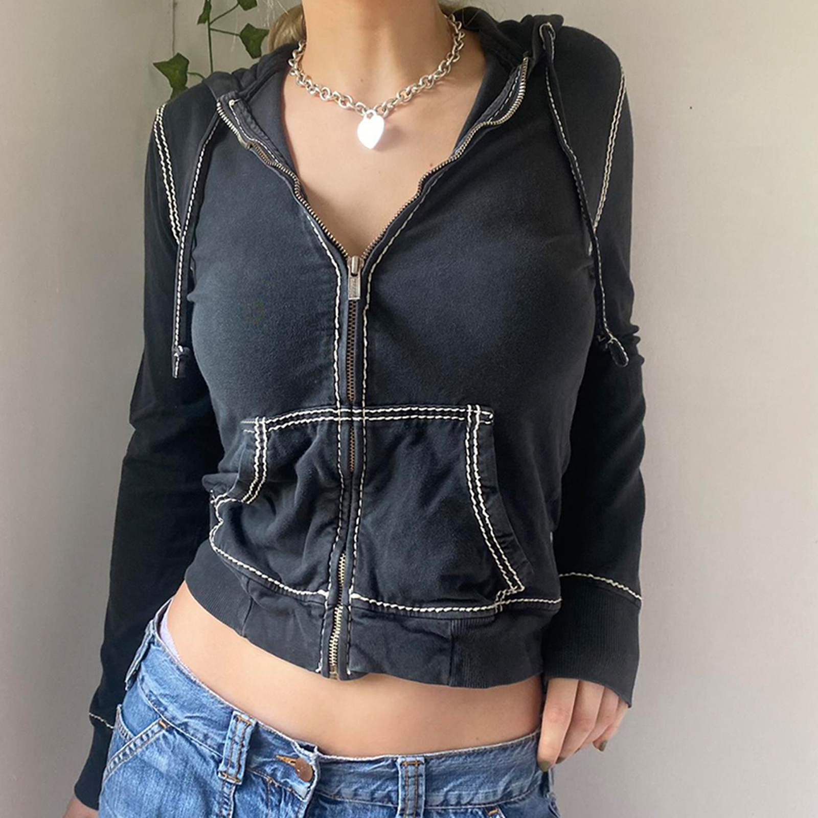 Copy| Product Name | Women's Autumn Winter Hooded Casual Zip Cropped Hoodie |