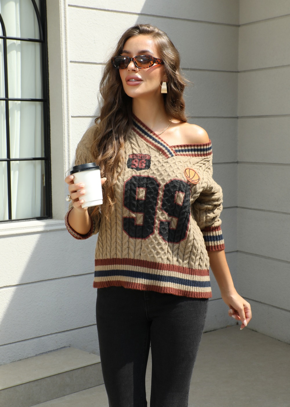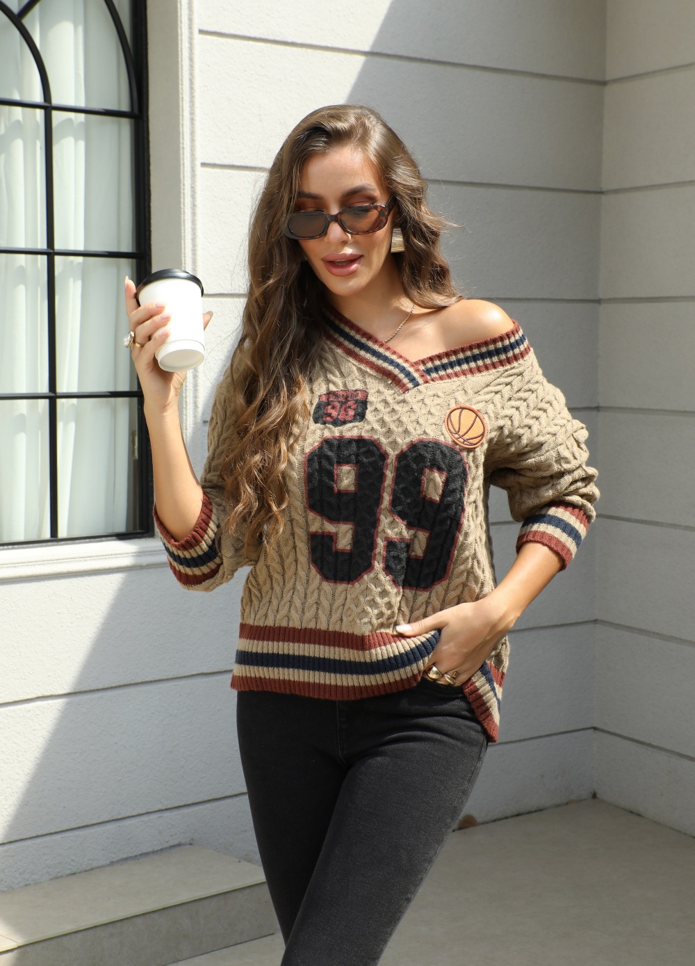 This Women's Autumn Winter Loose Basketball Knitting v-Neck Sweater Is An Indispensable Beautiful Scenery In Cozy Winter. Women’s Wholesale Sweaters And Cardigans At Global Lover Combine The Warm And Fashion. Best Oversized Sweaters Has Long Been The Mainly Favorite. It’s So Easy To Match a Large Sweater, Sometimes The Coat Can Be Ignored. Oversized Sweater With Short Skirt Is Dignified And Attractive. Oversized Sweater With Skirt Is Elegant And Sweet. Oversized Sweaters With Over-The-Knee Boots Can Easily Create a Sense Of Maturity And Femininity. Oversized Sweaters Paired With Shorts Are Full Of Youthful Vitality And Look More Dynamic And Energetic!