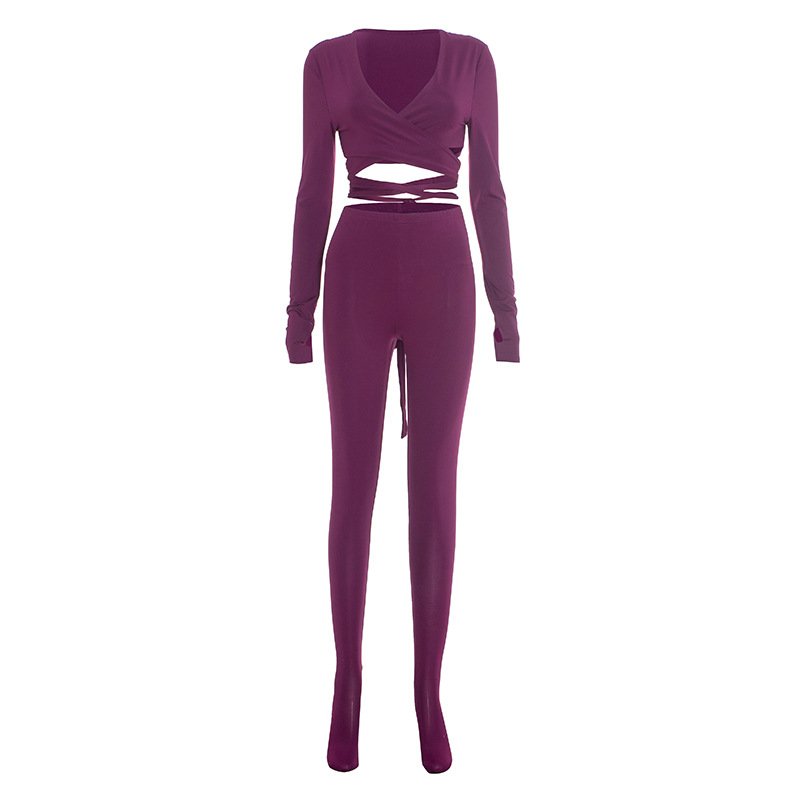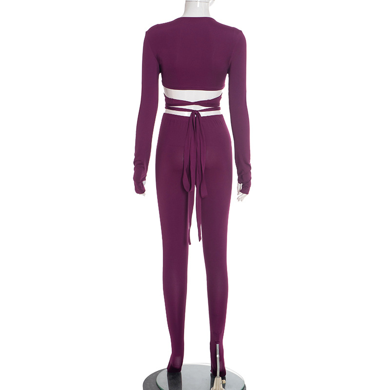 This Women's Autumn Winter v-Neck Cross Lace-Up Open Waist Fingerless Top High Waist Pants Set Design Made Of High Quality Polyster And Spandex Material. It Is Stretchy, Durable And Comfortable. It Is a Must-Have Outfit For All Seasons. Wholesale Two Piece Pant Sets Can Solve Your Collocation Troubles. Explore More 2 Piece Pants Set On Global Lover Wholesale Women Clothing Online Store.