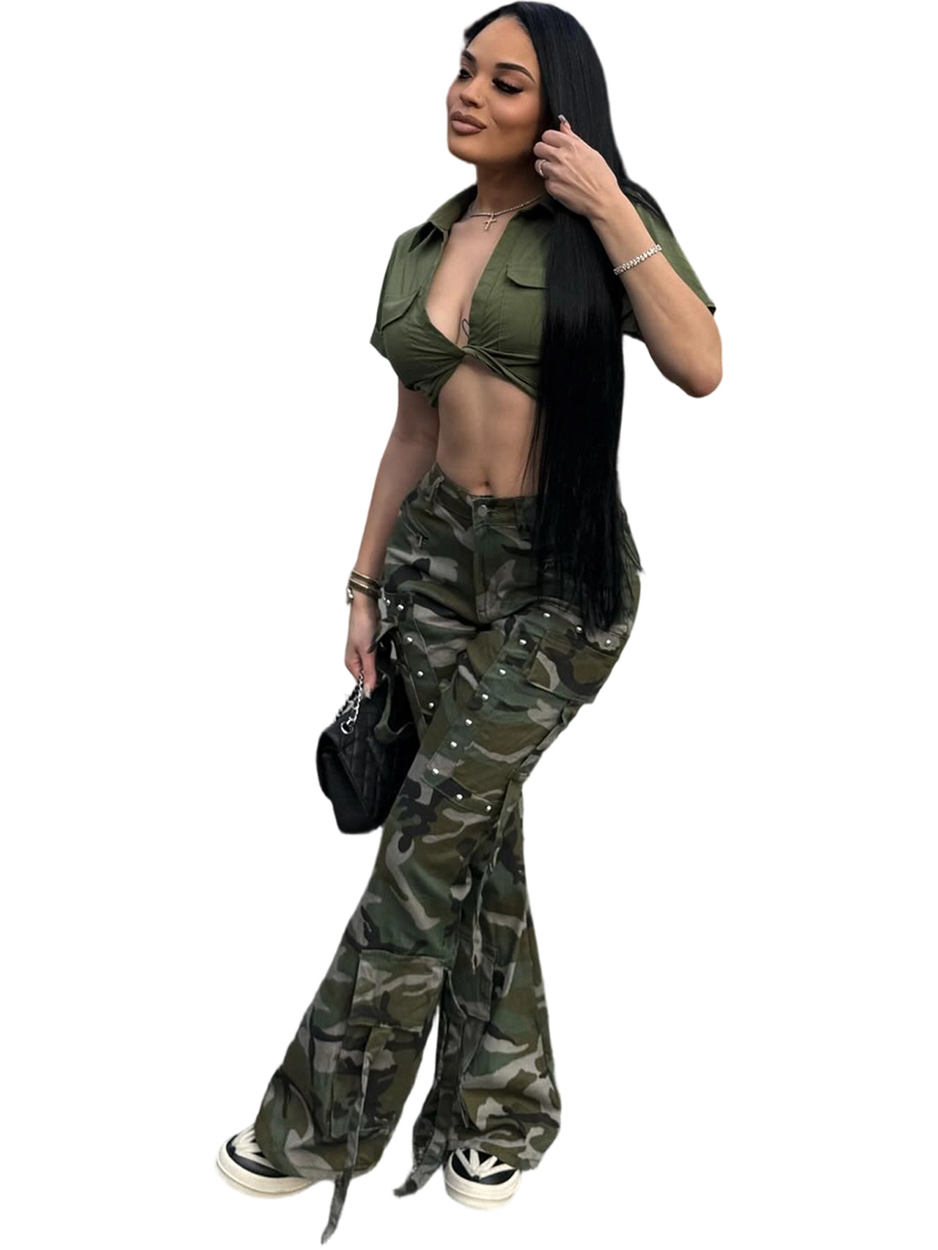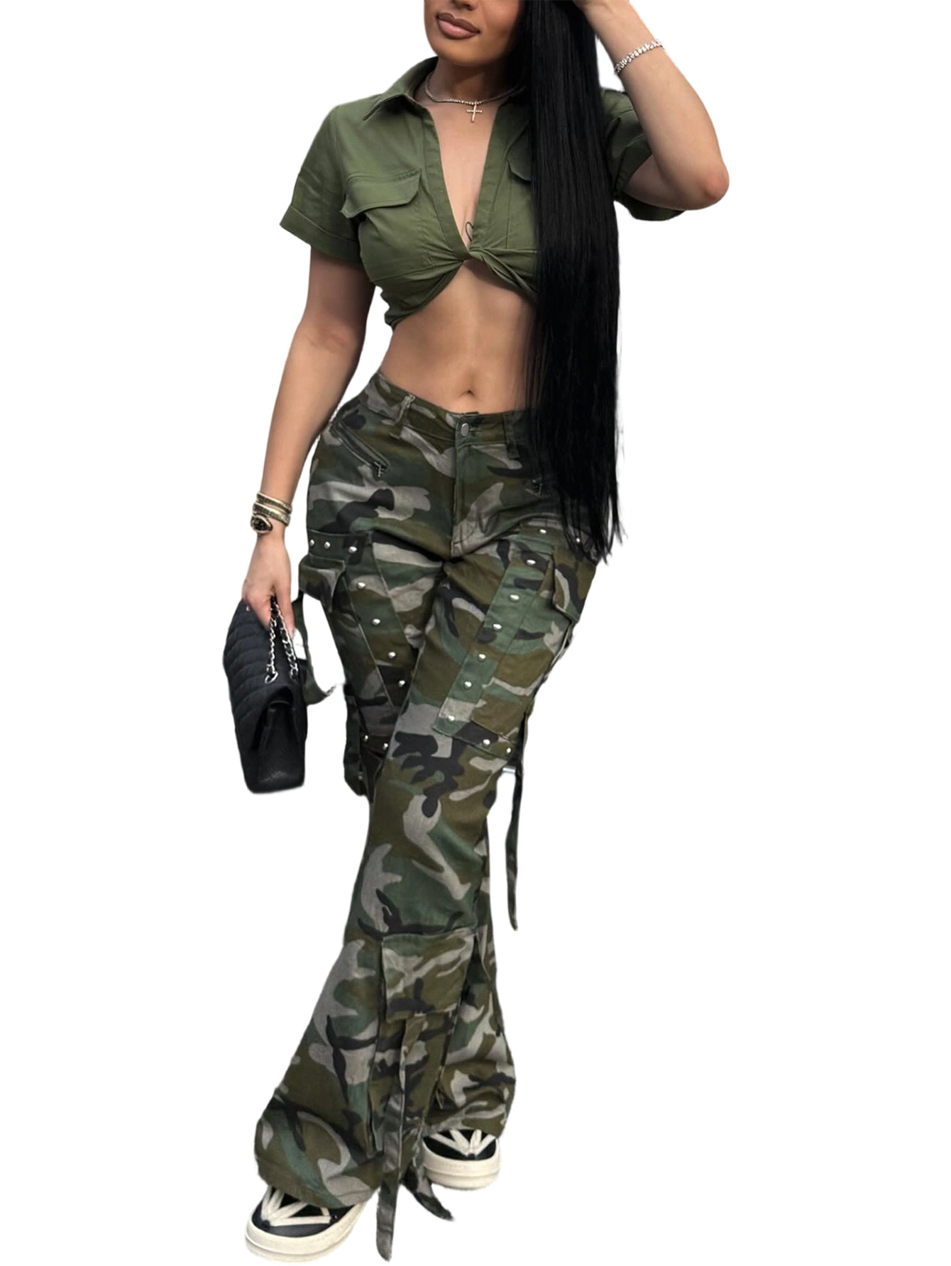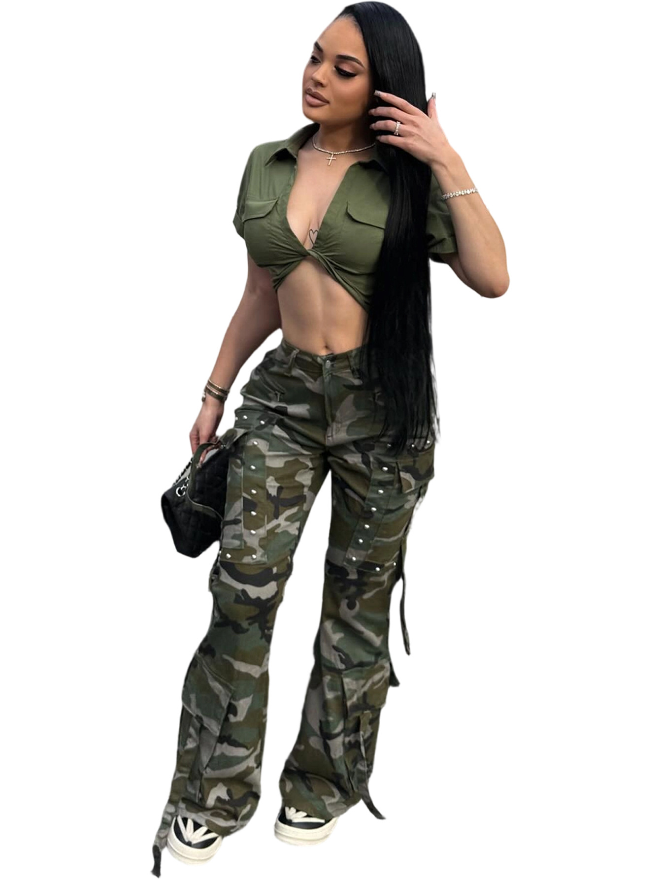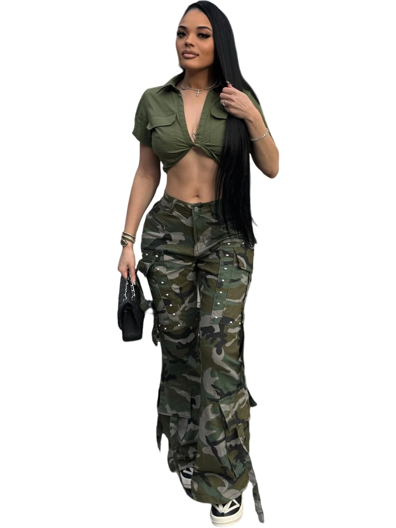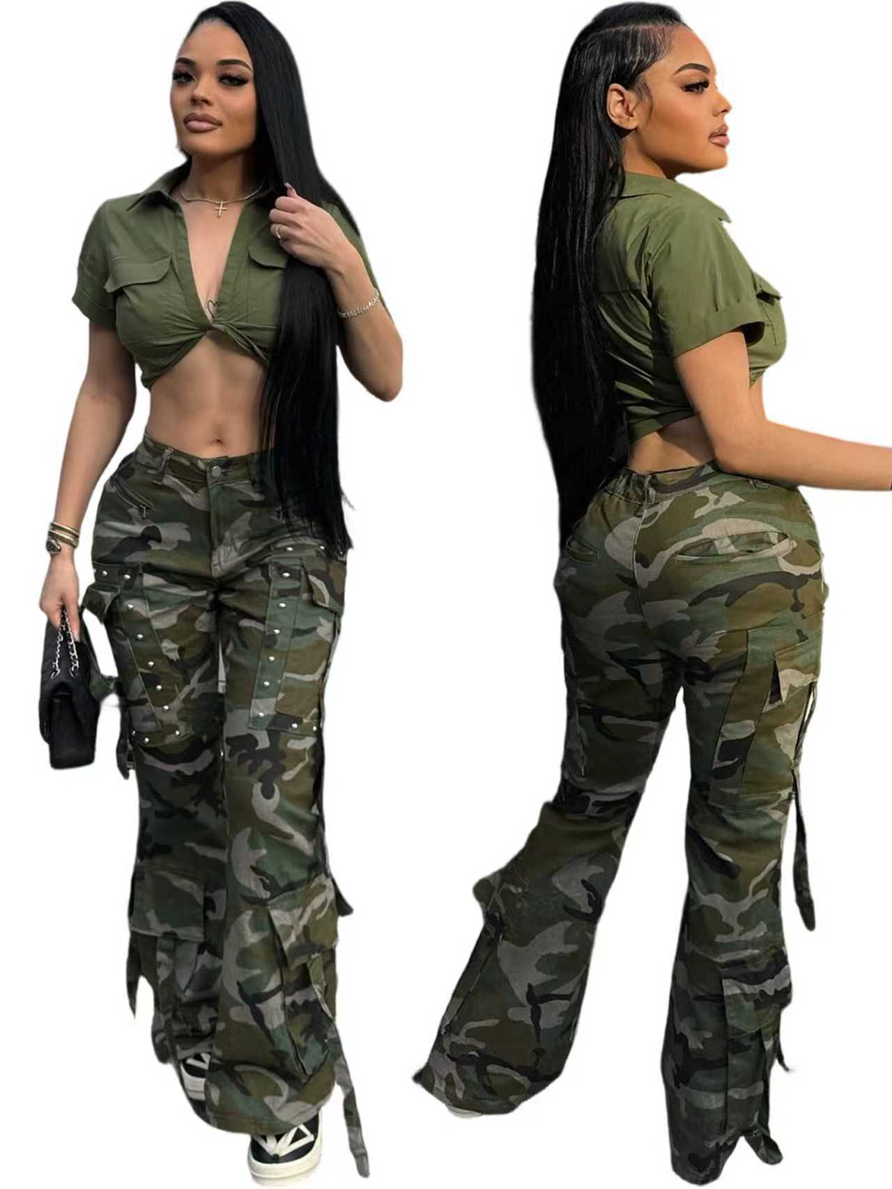 Copy| Product Name | Women's Camouflage Button Multi-Pocket Cargo Pants |