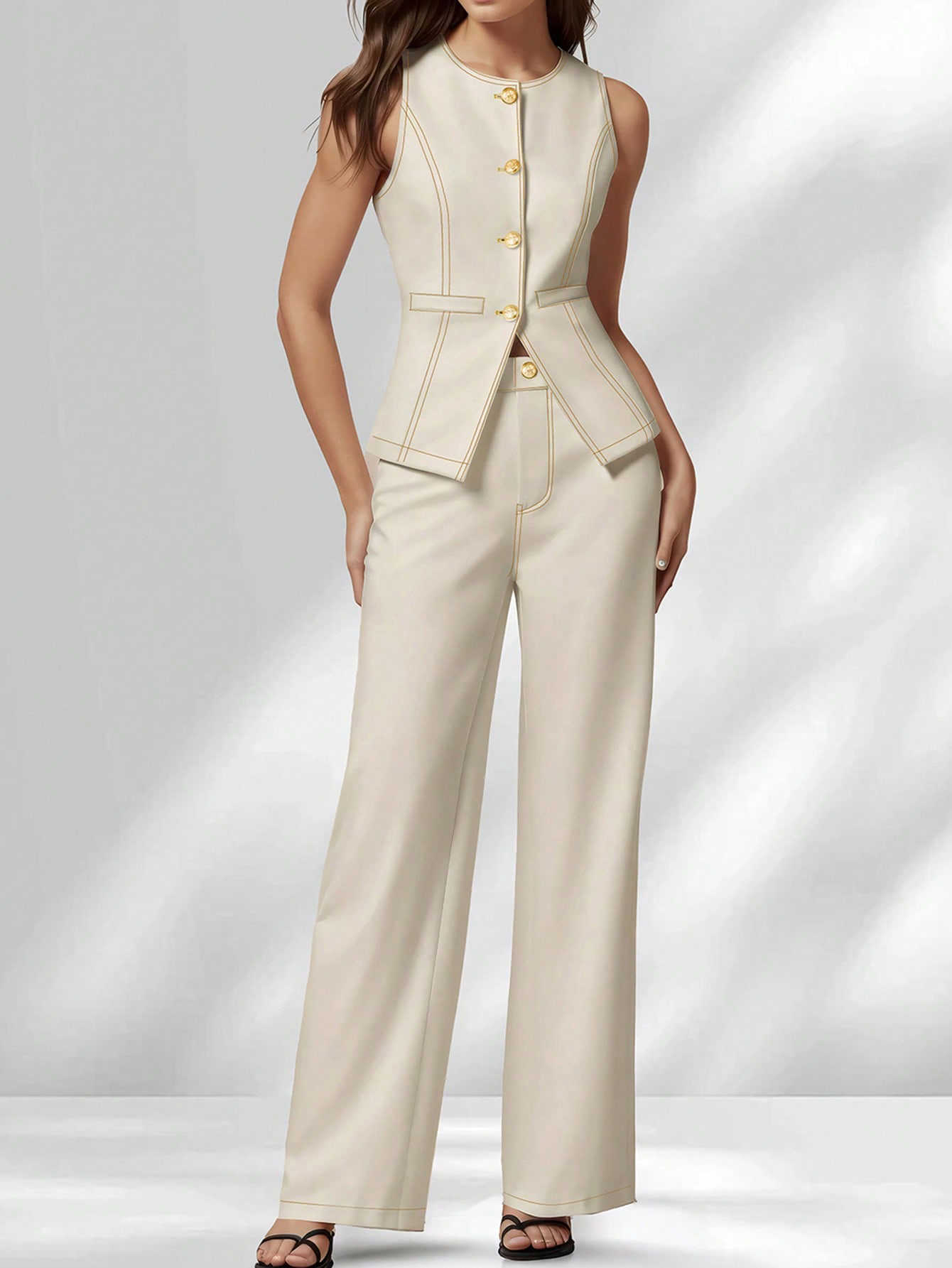 Copy| Product Name | Women's Career Chic Sleeveless Top and Pants Two-Piece Set |