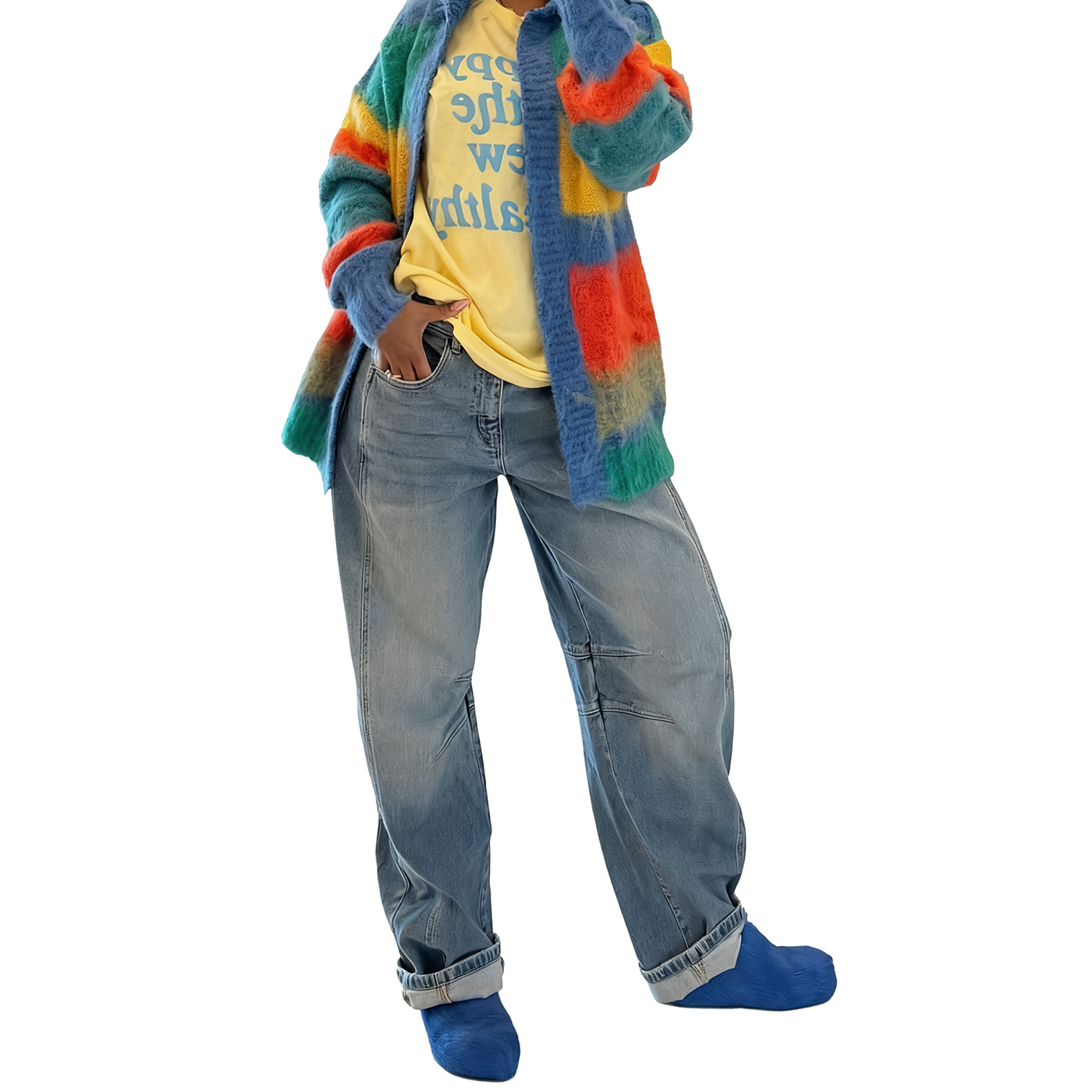 Copy| Product Name | Women's Casual Multi-Color Striped Knitting Loose Coat |