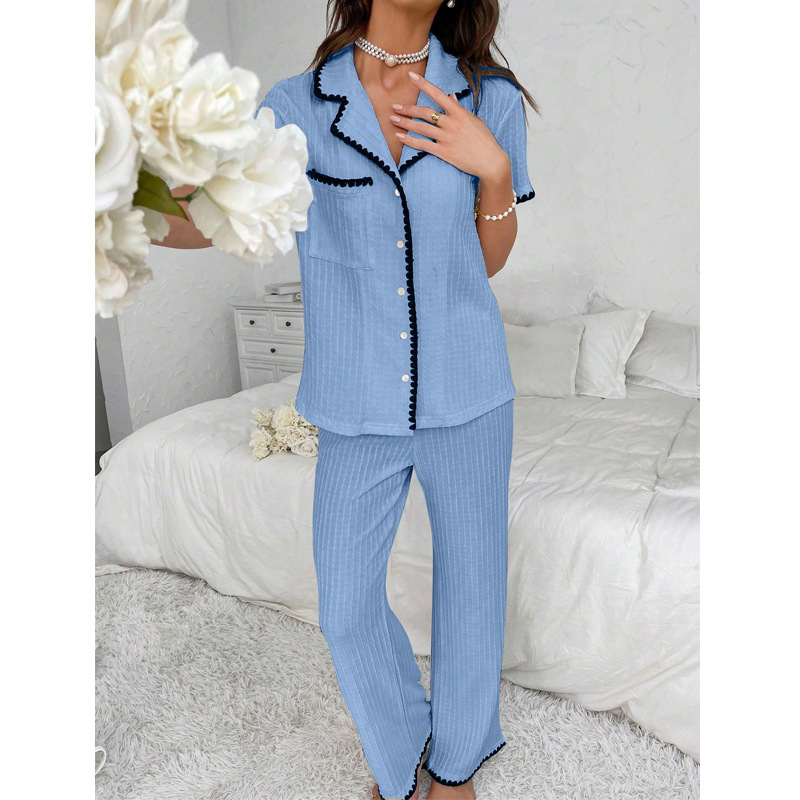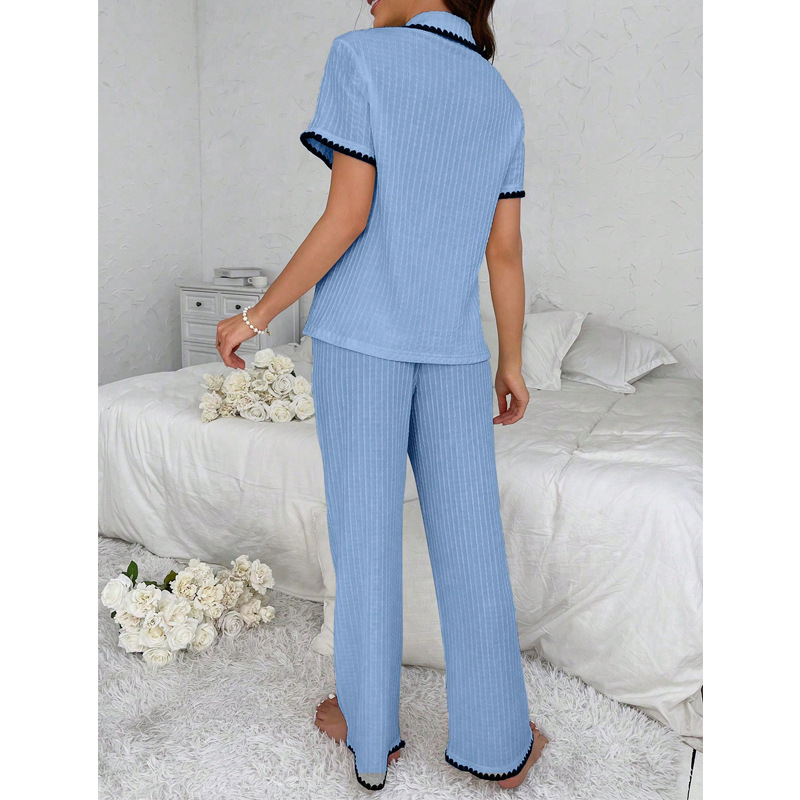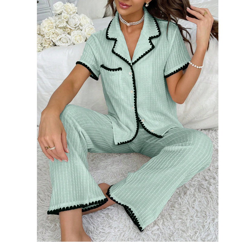 Copy| Product Name | Women's Fall Turndown Collar Color Block Short Sleeve Pajama Set |
