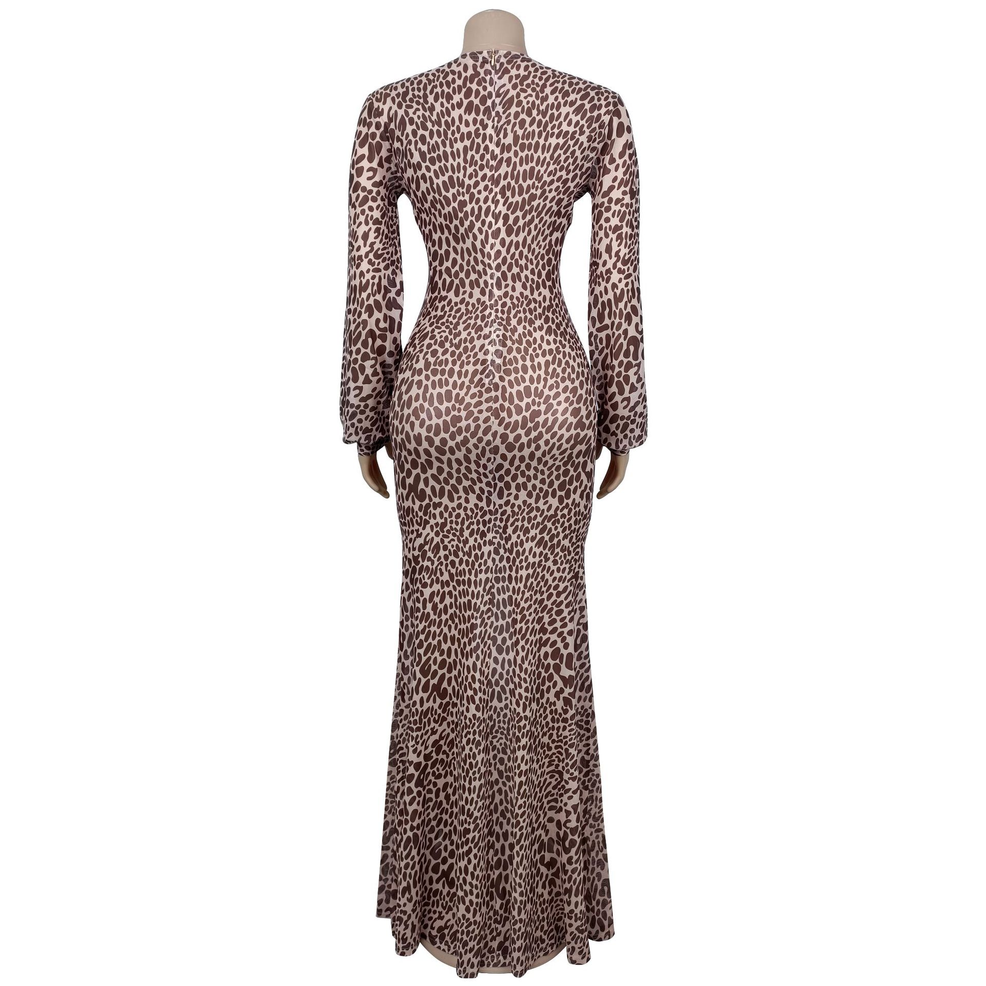 Copy| Product Name | Women's Fashion Sexy Deep V Leopard Print Slit Bodycon Dress |