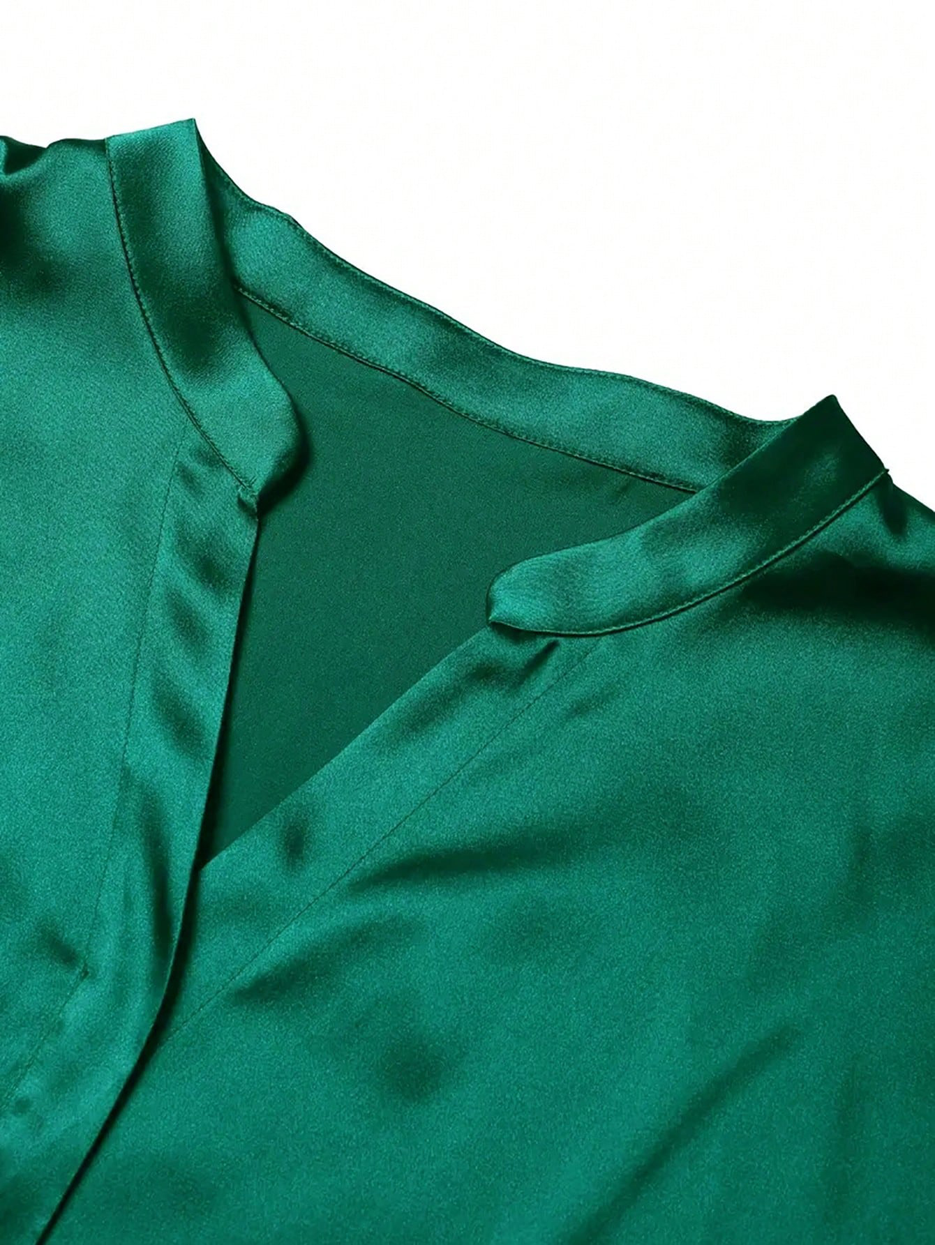 Copy| Product Name | Women's Plus Size Dark Green Shirt Casual V-Neck Luxury Short Sleeve Top |
