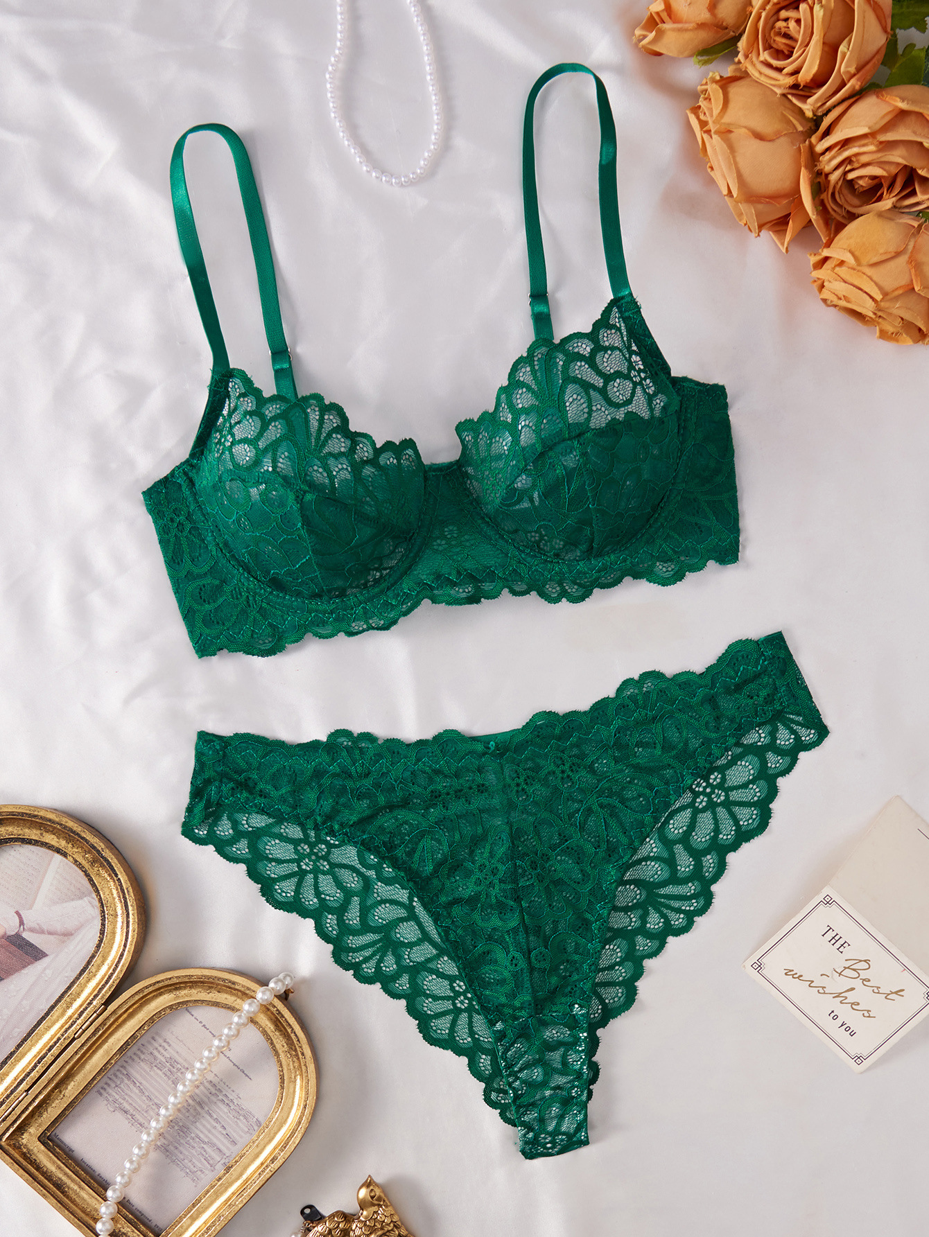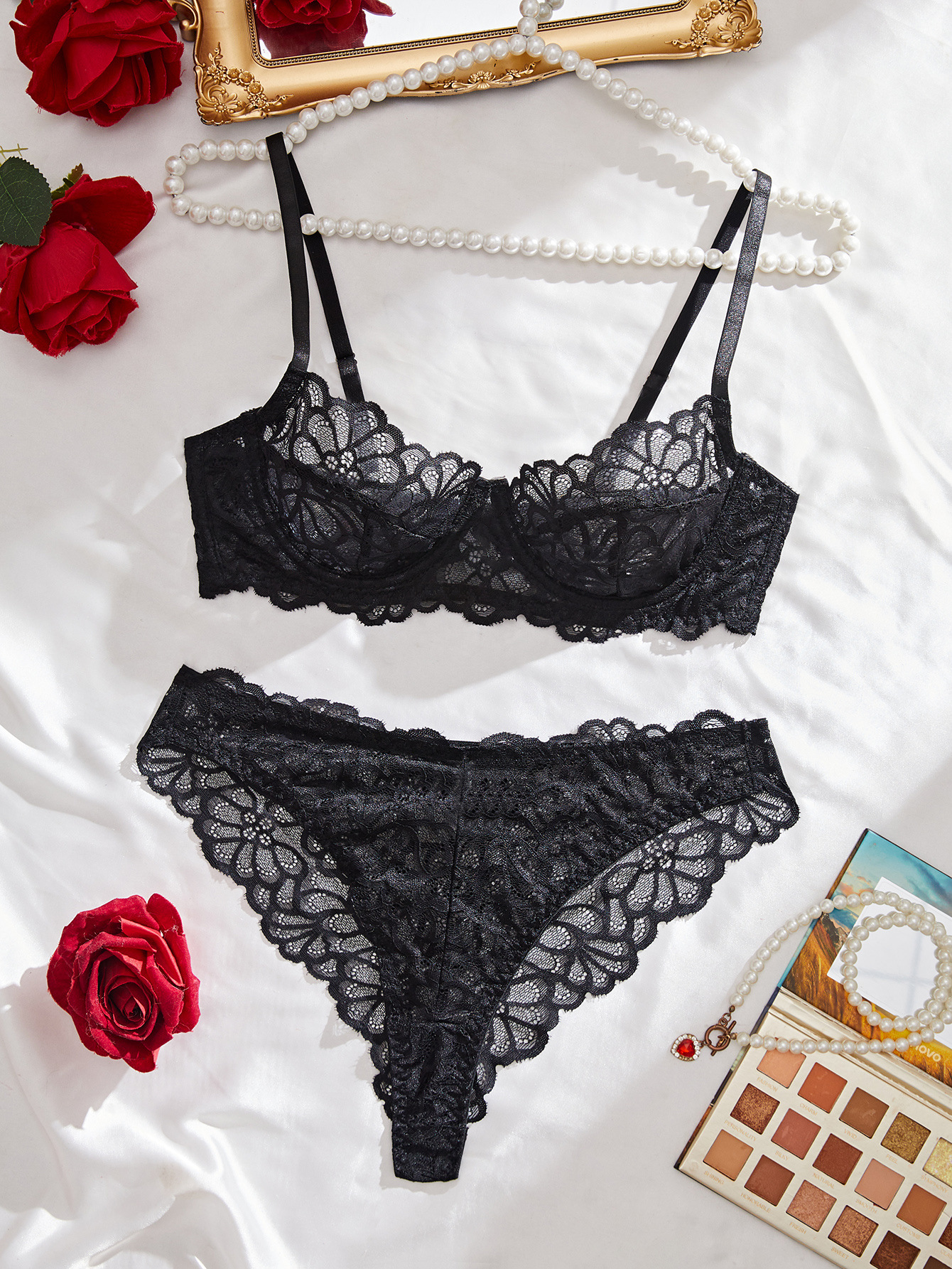 Copy| Product Name | Women's See-Through Lace Underwire Push-up Bra Lingerie Set |