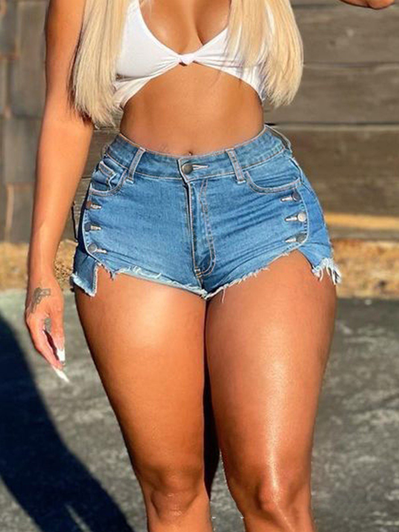 Copy| Product Name | Women's Sexy High Waist Washed Hollow Fringe Denim Pants |