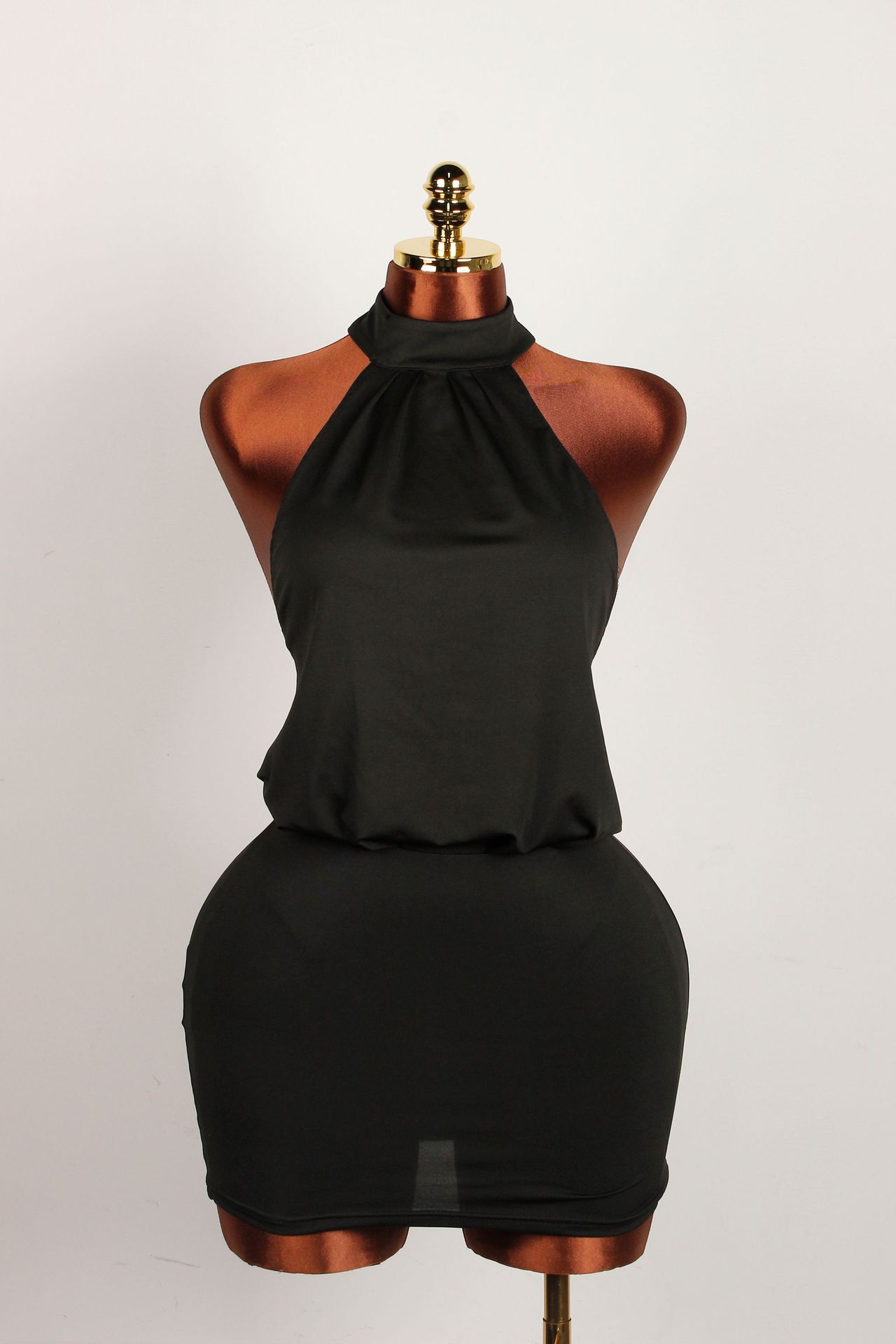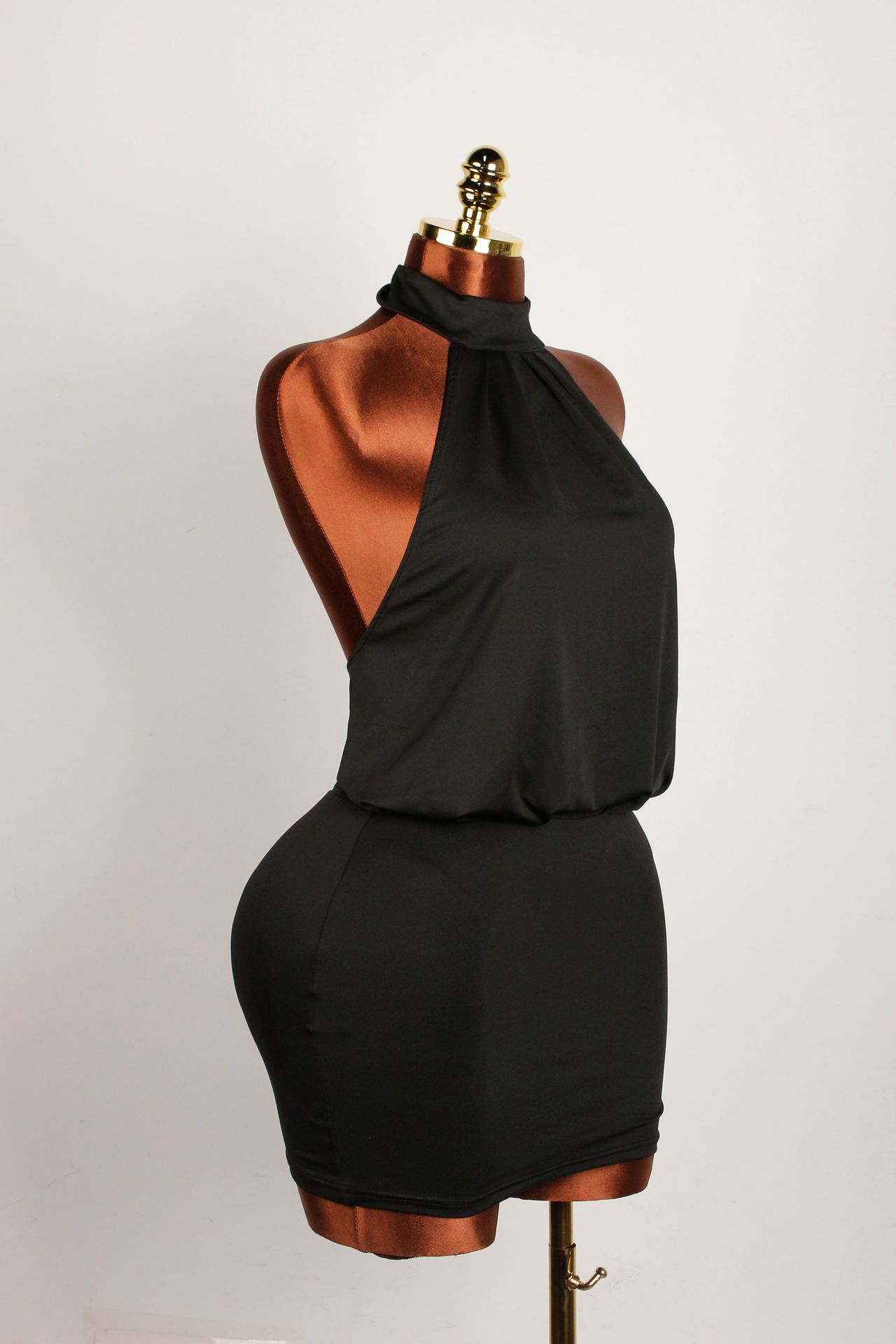 Copy| Product Name | Women's Solid Halter Neck Low Back Sexy Bodycon Mini Dress |