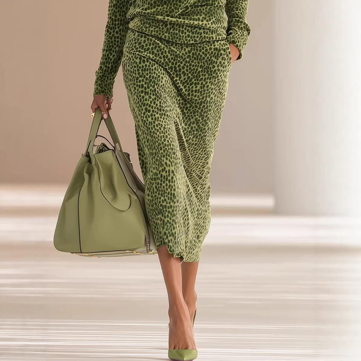 Copy| Product Name | Women's Spring/Autumn/Winter Chic Leopard Print Casual Long Sleeve Two-Piece Skirt Set |