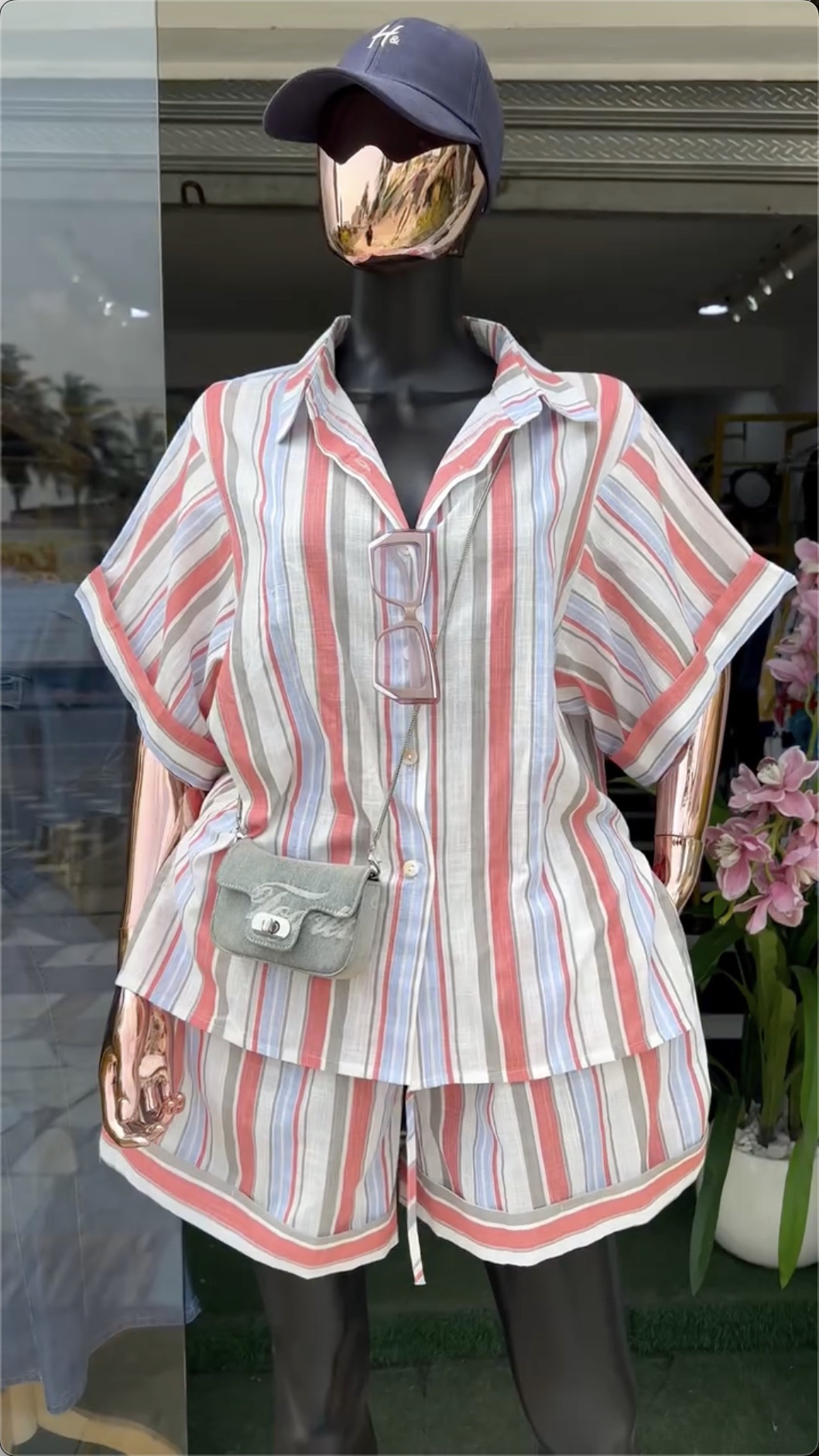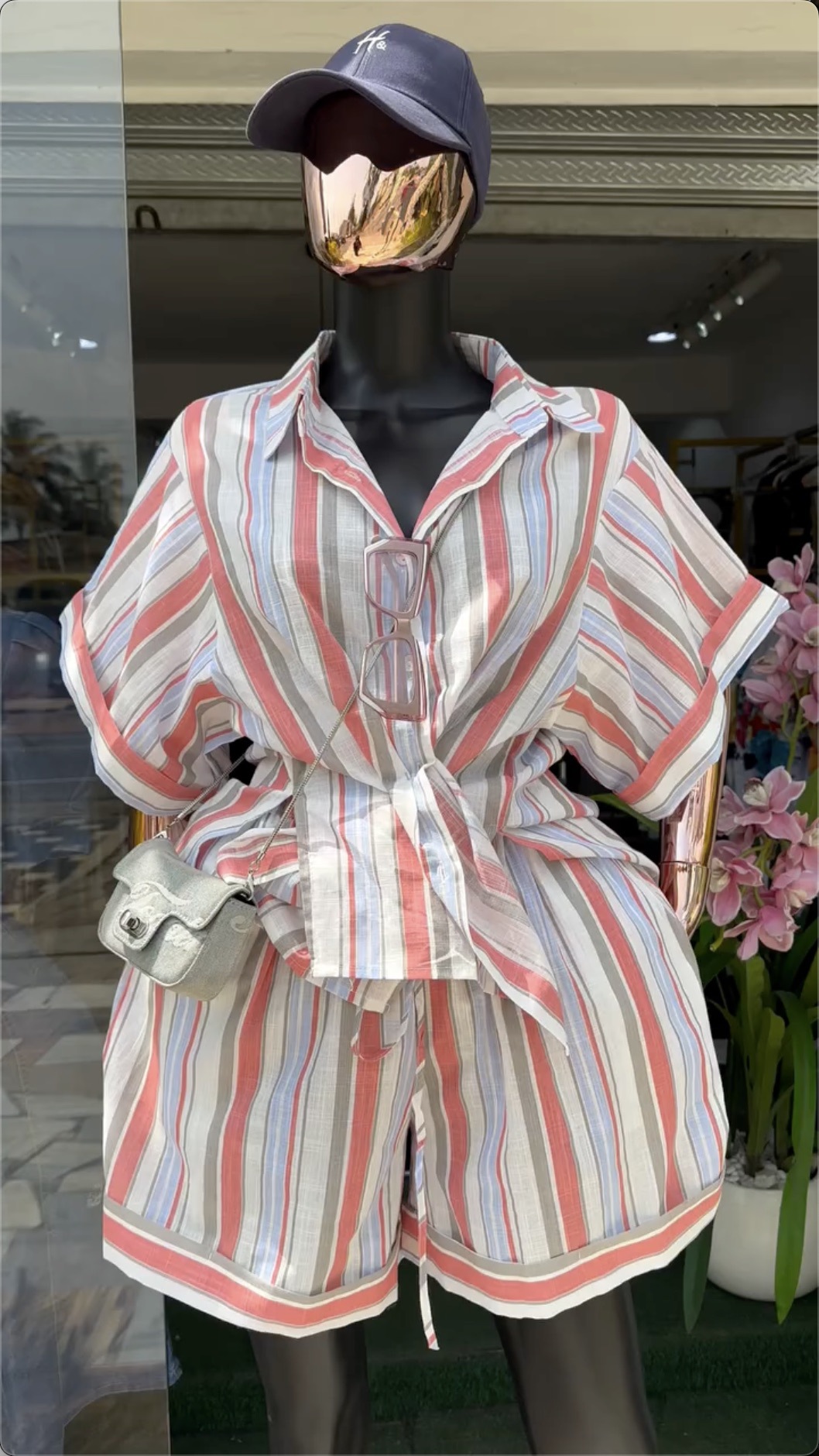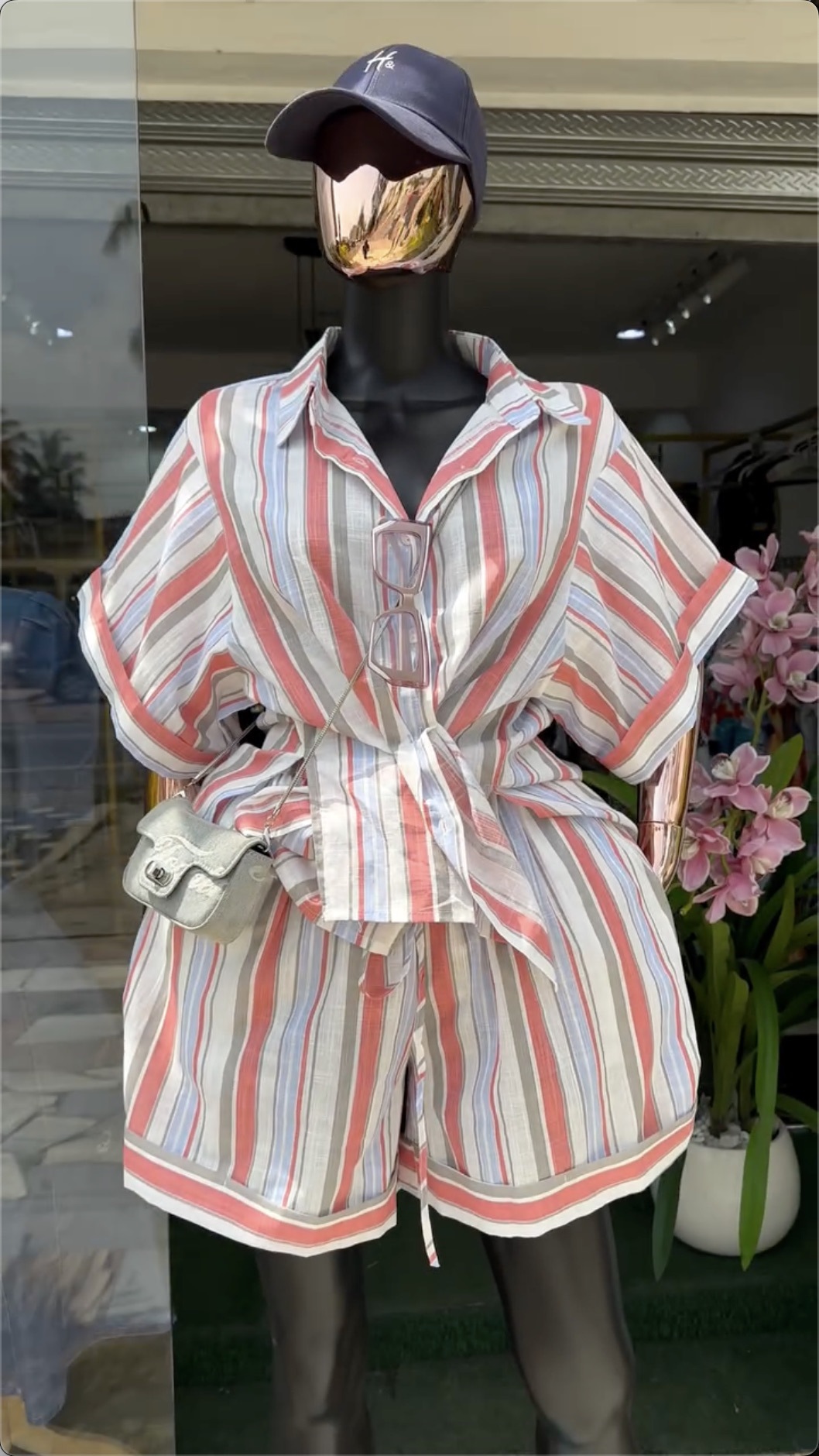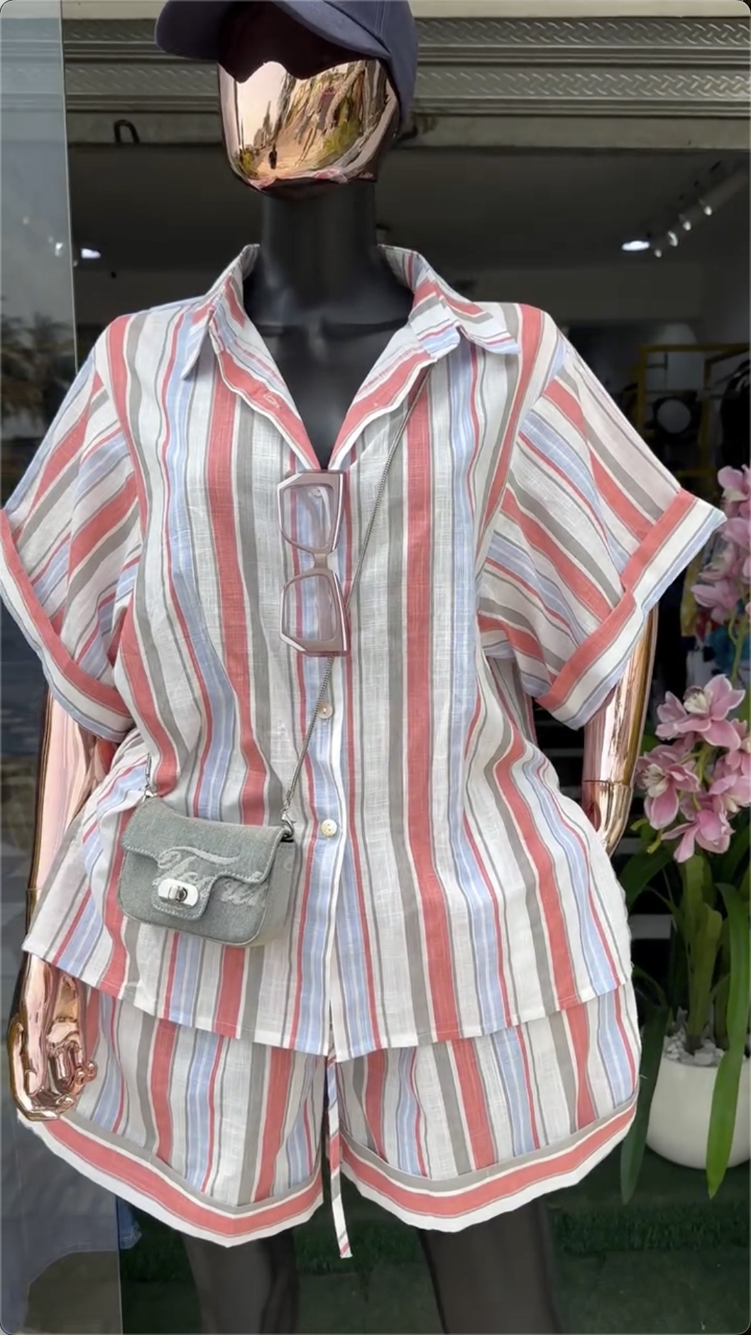 This Women's Spring Fashion Striped Turndown Collar Short Sleeve Shirt & Tie-Waist Wide-Leg Shorts Set Design Made Of High Quality Polyster And Spandex Material. It Is Stretchy, Durable And Comfortable. It Come With The Top And Shorts. Wholesale Short Sets Saves Some People From The Trouble Of Matching. And For Matchmakers It Is More Flexible Than One-Piece Outfit. Two Piece Short Set Can Be Worn Together Or Individually, Ladies Can Match Them According To Different Occasions. Grab Different Two Piece Short Sets For This Spring And Summer.