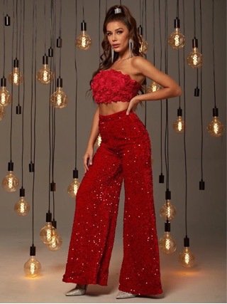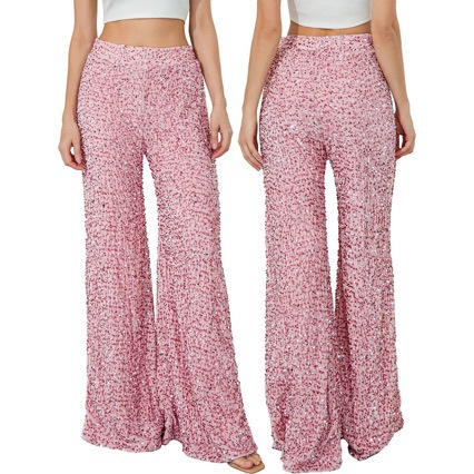 Copy| Product Name | Women's Spring Summer Casual Solid Color Sequin Mid-Waist Wide-Leg Pants |
