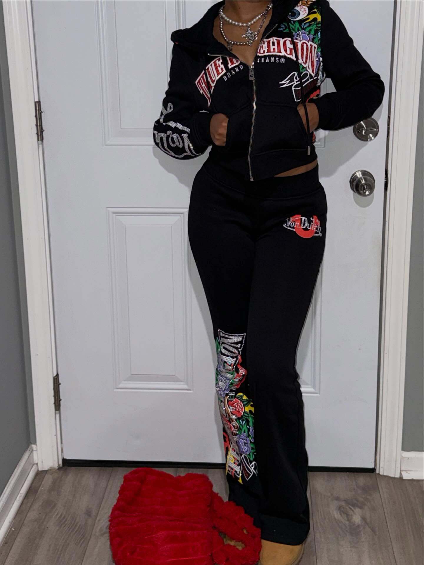 Copy| Product Name | Women's Street Casual Printed Hoodie Pants Fashion Set |