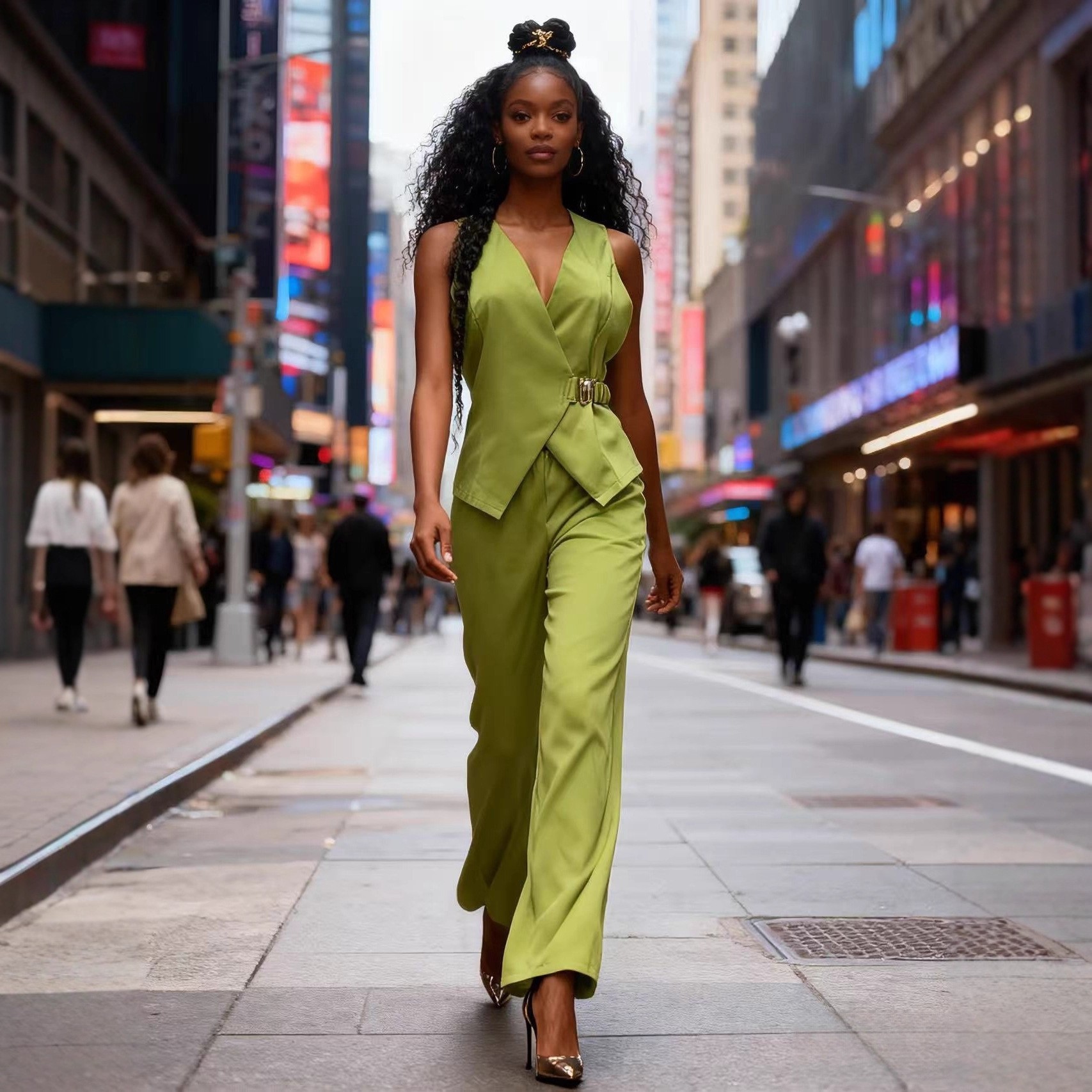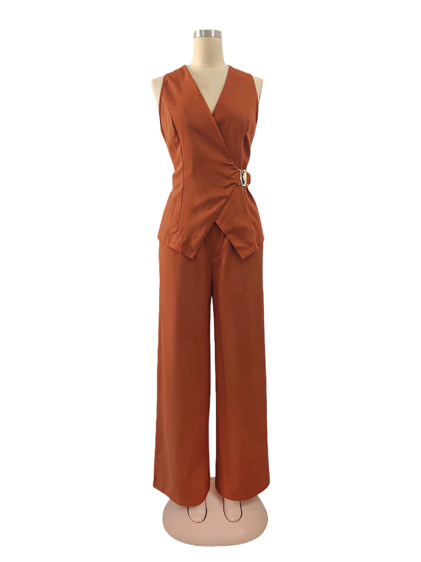 Copy| Product Name | Women's Summer Career Sleeveless V-Neck Vest and Wide-Leg Pants Set |